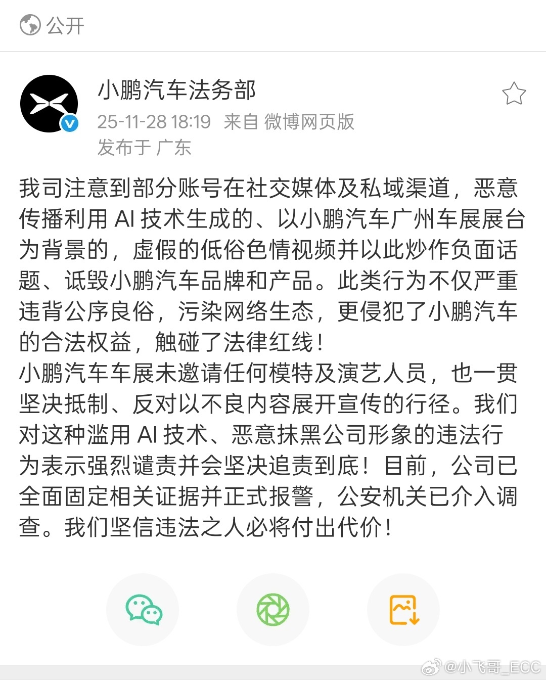 这叫啥事……用AI生成小鹏广州车展的背景玩擦边……今日小鹏法务上班了