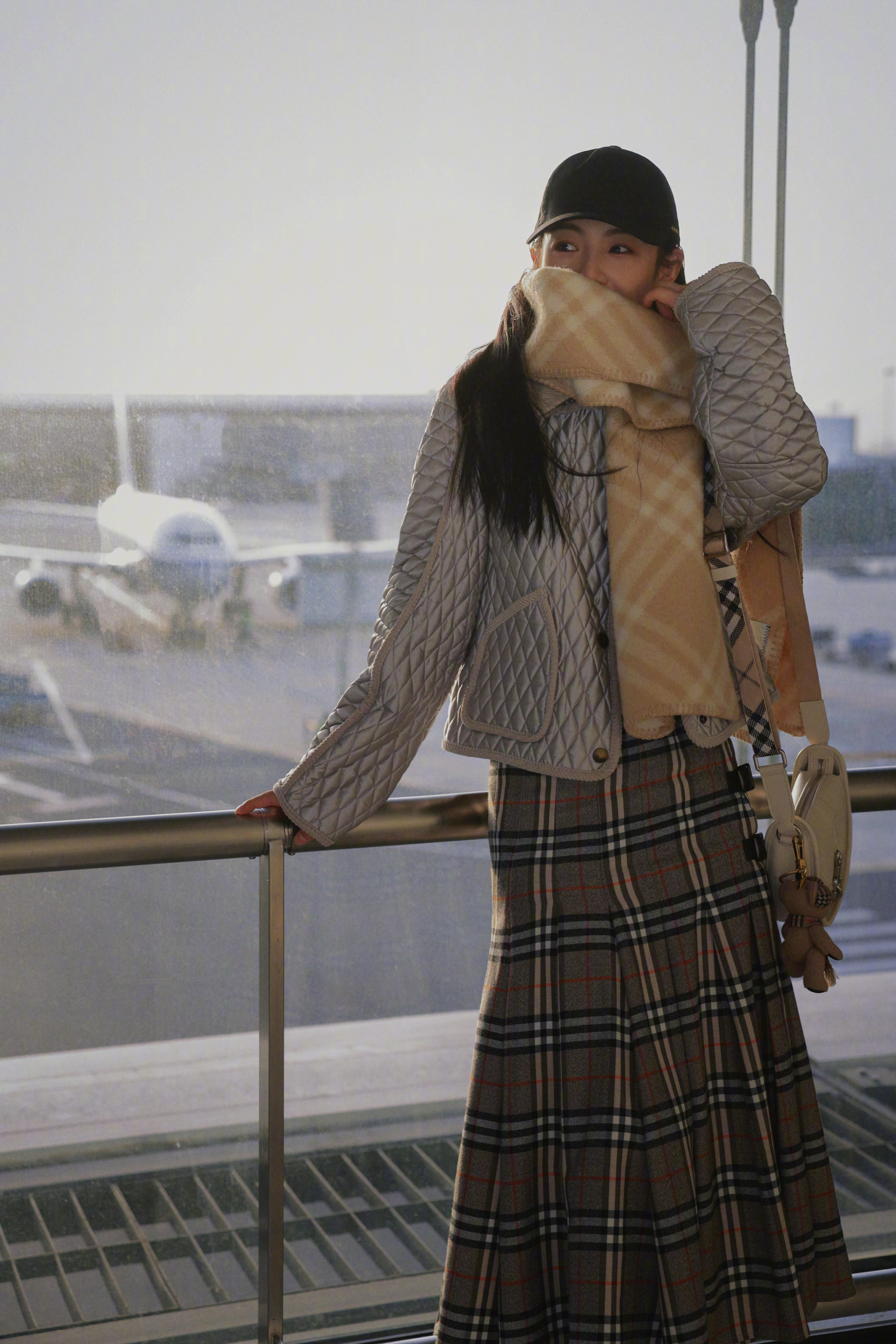 陈丽君 x Burberry陈丽君机场Look演绎全套时装,身着Burberry菱形绗缝外套,搭配格纹半裙,亮点的羊绒围巾、高筒靴、单肩包。高级英伦格调,幻视留学归国的文静大小姐