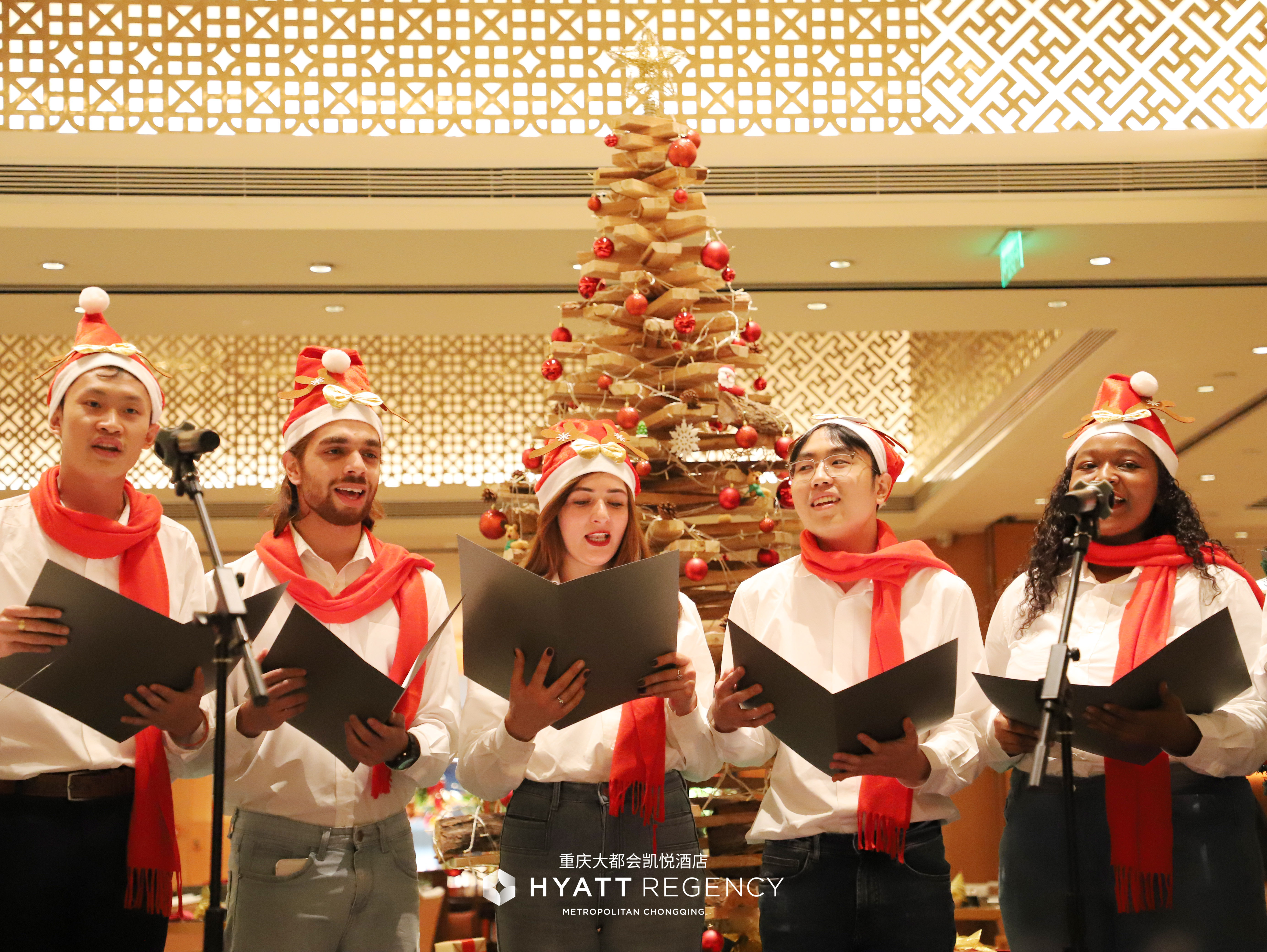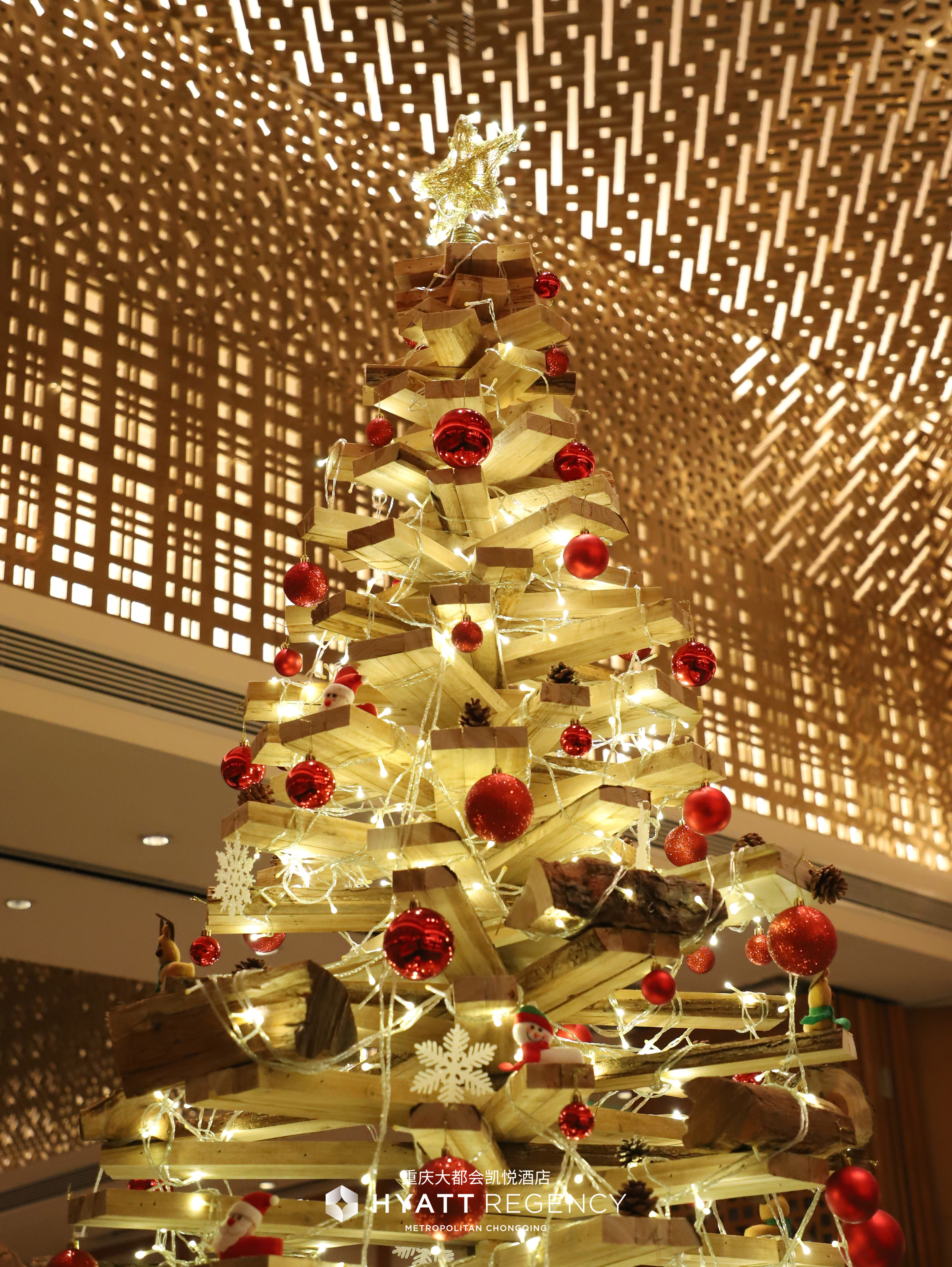 “关爱地球,绿色圣诞”重庆大都会凯悦酒店点亮圣诞季11月27日重庆大都会凯悦酒店举办了一场主题为“关爱地球,绿色圣诞”的亮灯仪式。步入酒店大堂,立刻会被那颗璀璨夺目、高达6米的圣诞树所吸引。它的“枝叶”是由2518个回收的矿泉水瓶构筑而成。它闪耀的,不仅是节日的灯光,更是可持续理念的光芒。此刻,还有一颗充满质感的圣诞树正静静散发着果木香。它矗立在酒店8楼咖啡厅,是由酒店长安壹号中餐厅烤制果木挂炉烤鸭的苹果木搭建而成。这些曾经成就了美味的美食功臣,如今以另一种姿态,续写着温暖与生命的故事。这两棵独一无二的圣诞树,不仅仅是装饰,更是酒店发出的最诚挚的邀请:邀请大家一同,用点滴行动,化身成这个圣诞季里最温暖的绿色天使,一起守护大家的蓝色星球。 重庆·重庆解放碑凯悦酒店(东南门)