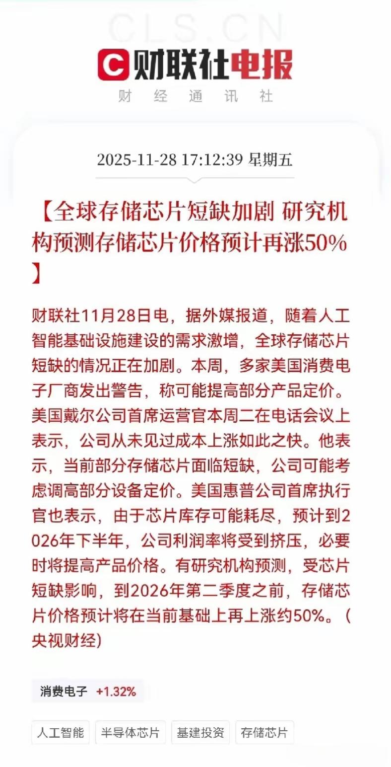下周芯片半导体还得继续上涨,全球存储芯片短缺加剧,根据研究机构的预测,存储芯片的价格预计还要再涨50%!而且在本周多家美国消费电子厂商发出的警告!可能要提高部分产品的定价!以前没有见过如此涨幅过快的价格,而且现在芯片库存已经告急,基本上快要耗尽!芯片短缺的影响!企业可能要提高产品的价格! 现在存储芯片价格的上涨,手机的价格可能也有上涨的风险,根据手机厂商的存储芯片上涨价格直接上涨了500,一些厂商自己停止采购存储芯片,手机价格可能也会上涨