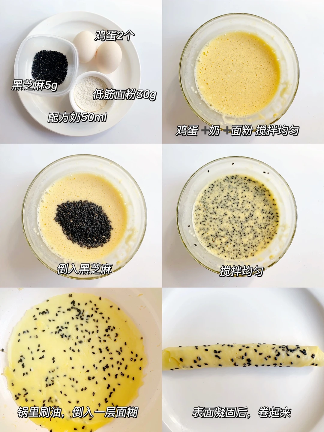 1⃣️鸡蛋➕配方奶➕面粉混合搅拌至无干面粉,倒入黑芝麻拌均匀