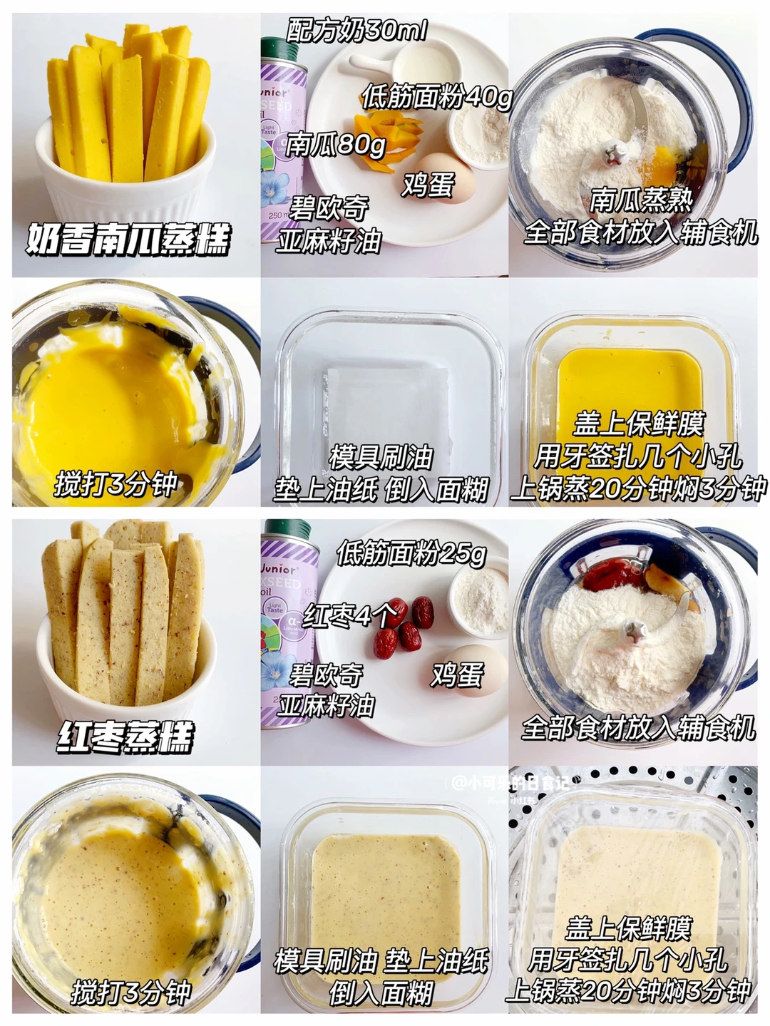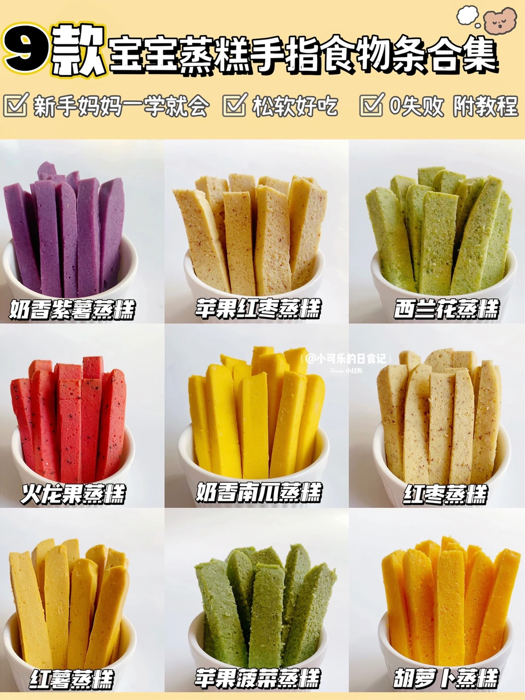 今天分享几款小月龄宝宝入门级的手指蒸糕条做法,做法简单,口感松软,每款好吃😋 还能锻炼宝宝抓握能力和咀嚼能力,快给宝宝安排吧✅