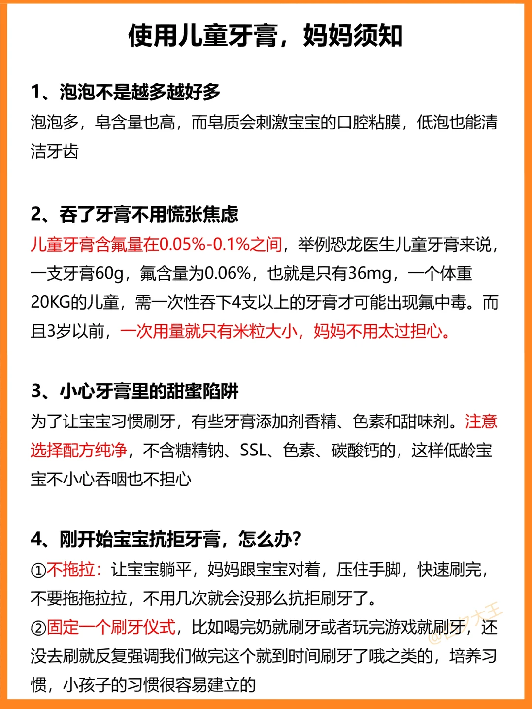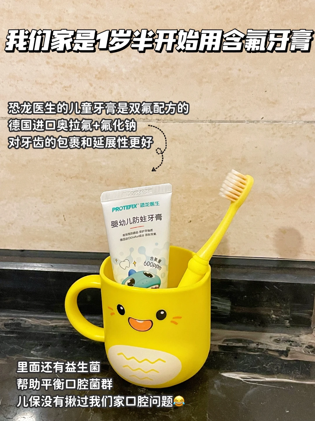 🔹提示:新手妈妈不知道选哪个牙膏的话,可以试试恐龙医生奥拉氟牙膏,这种低泡的很温和,刷起来不容易干呕,宝宝刷起来不会抗拒