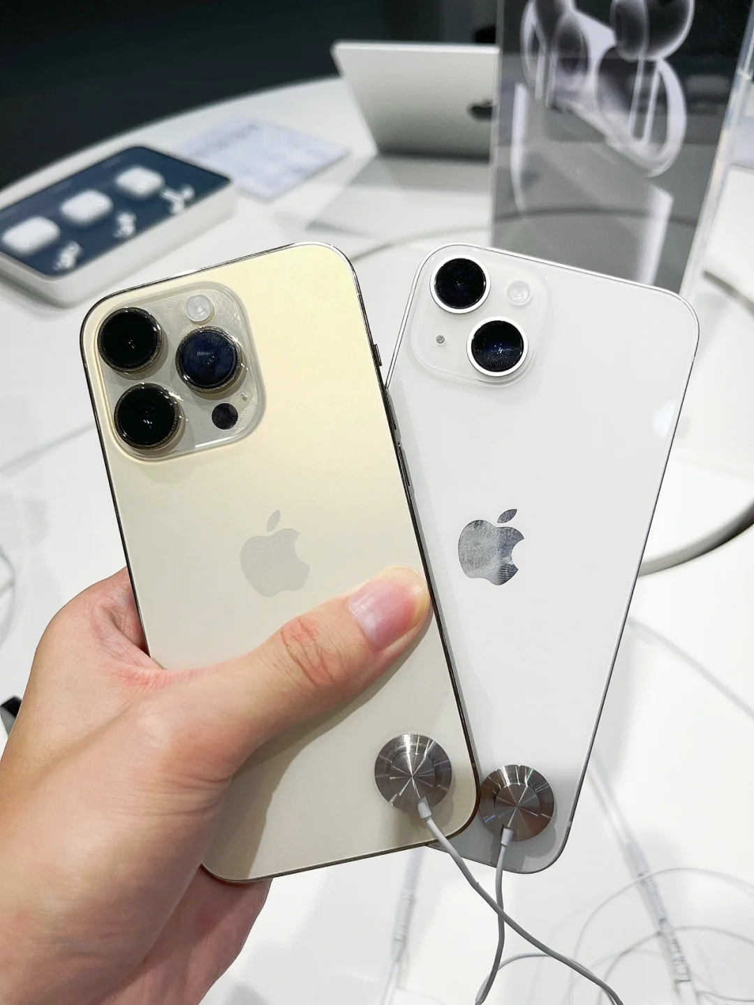 二次去了附近的一家🍎苹果店,终于见到了心心念念的iPhone14系列,当然Plus还得等一段时间才能见到,今天就浅谈一下我的上手体验。 首先14标准版完全没啥看头,和13标准版外观一毛一样,告辞