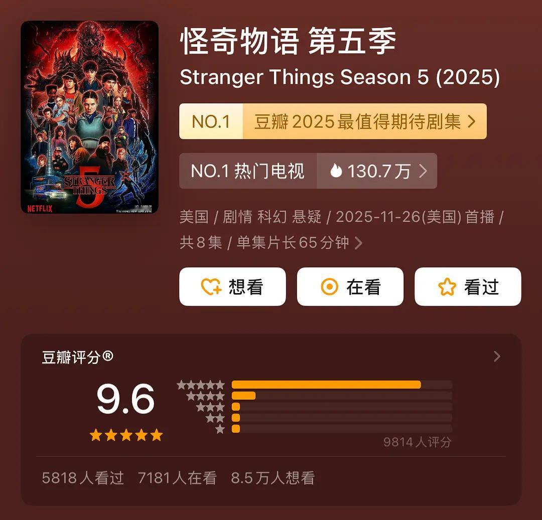 《怪奇物语第五季》开分9.6??!!这么高吗,我在抖也刷到很多安利,是真的很好看吗