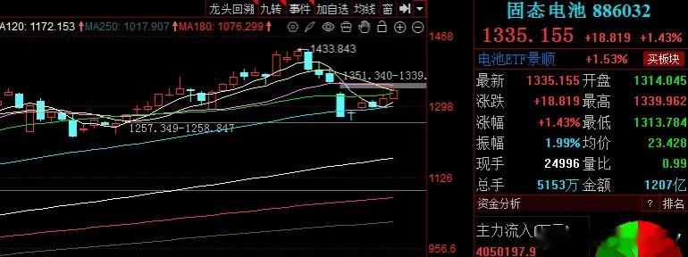 固态电池板块中阳上行,短期承压上涨动能不足,波段仍具上行基础今日固态电池板块走出中阳线上涨行情,板块指数涨幅超1.4%,个股多数飘红,多只个股强势封板,盘面表现活跃。上午已精准预判,固态电池作为CPO算力赛道配套领域,在今日CPO算力板块震荡休整背景下,具备独立上行动能,板块上午稳步走高、午后加速上行的走势,与前期判断完全契合。技术面来看,板块今日以中阳线收复部分前期缺口,但上方面临双重关键压力,一是20日均线压制,二是前期箱体上轨及密集套牢盘形成的阻力,短期突破上述压力区间难度较大,后续继续上行动能不足,上涨空间受限。波段视角下,固态电池前期上涨过程中已有大量资金深度布局,叠加AI及算力芯片功耗持续提升、电力需求同步增长的核心逻辑支撑,板块中长期仍以震荡上行为主,具备持续布局价值。