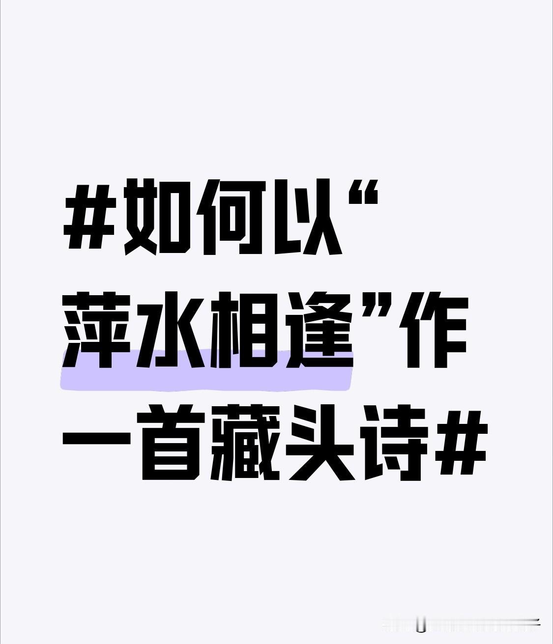 想以“萍水相逢”作藏头诗,其实不难。像“萍日不为父老倾,水碧沙明两岸苔。相门出相光青史,逢著澄江不敢咏”,每句首字就组成了“萍水相逢”。 创作时,得先确定主题,若想表达友情,可让诗句温馨;若想感慨命运,就写得深沉些。像许浑与秀才萍水相逢,题诗“高阁晴轩对一峰,毗陵书客此相逢”,借景抒情,充满禅趣。还可发挥想象,把生活感悟融进诗里,说不定能写出超棒的藏头诗。