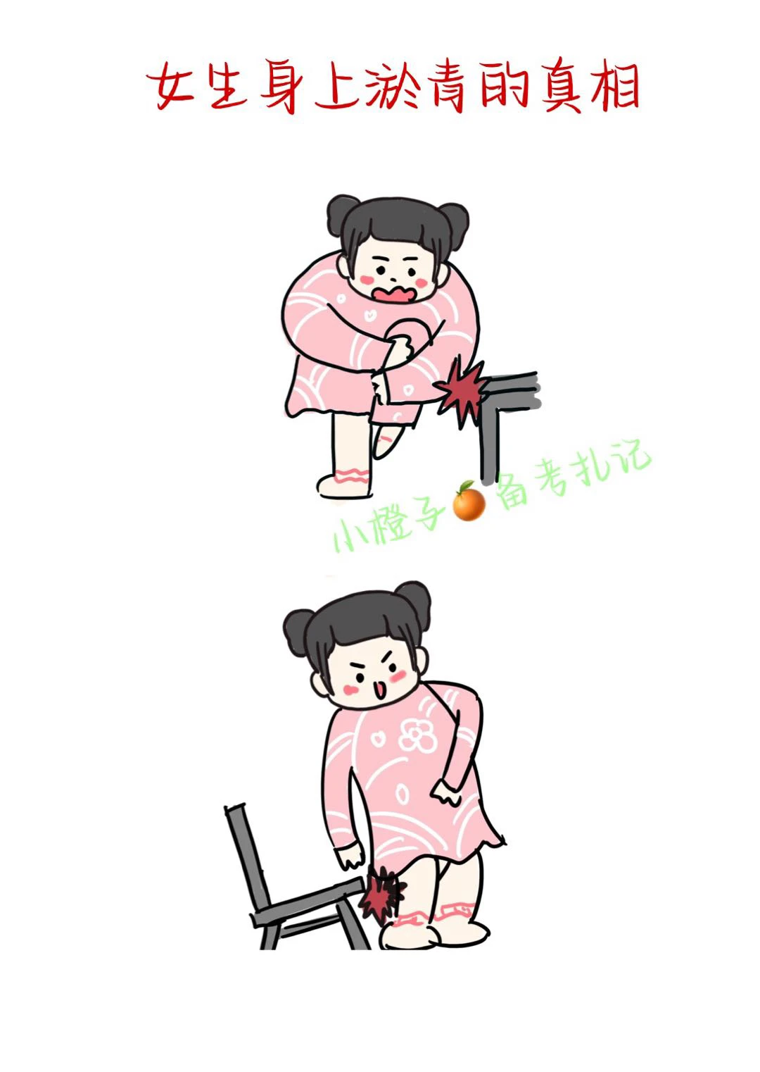 ❤️淤青:事实上,当皮肤受到外力撞击时,毛细血管出血🩸,血液中的血小板和凝血因子来不及反应,血液困在皮肤下面,就形成了淤青。