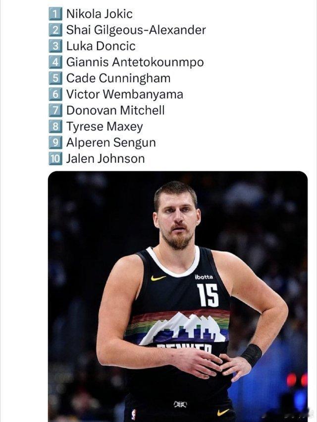 NBA官网最新MVP榜单⬇️1.约基奇2.亚历山大3.东契奇4.字母哥5.坎宁安