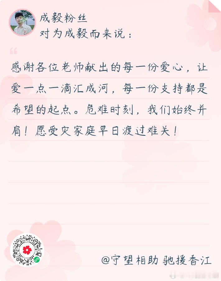 粉随正主,果果们也紧跟的步伐,目前为受灾同胞的爱心捐赠金额已达40w+,愿香港早日渡过难关成毅捐赠100万|成毅
