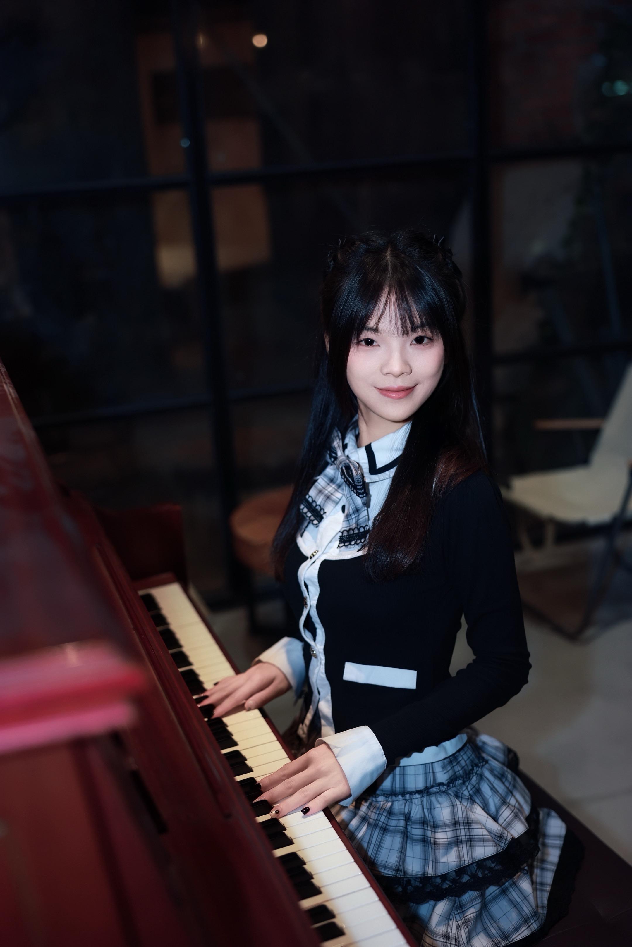 湛江互免约拍。在校园天台拍了组蓝色大扇子