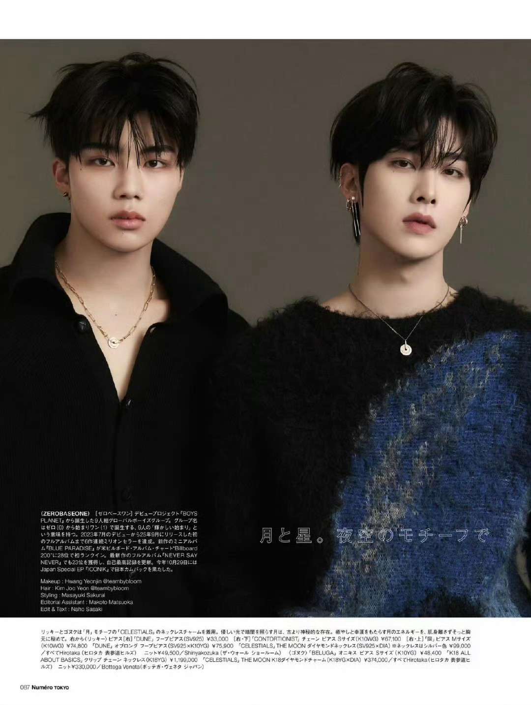 ZB1 章昊 / 沈泉锐 / 朴乾旭 / 金地雄Numéro Tokyo Jan