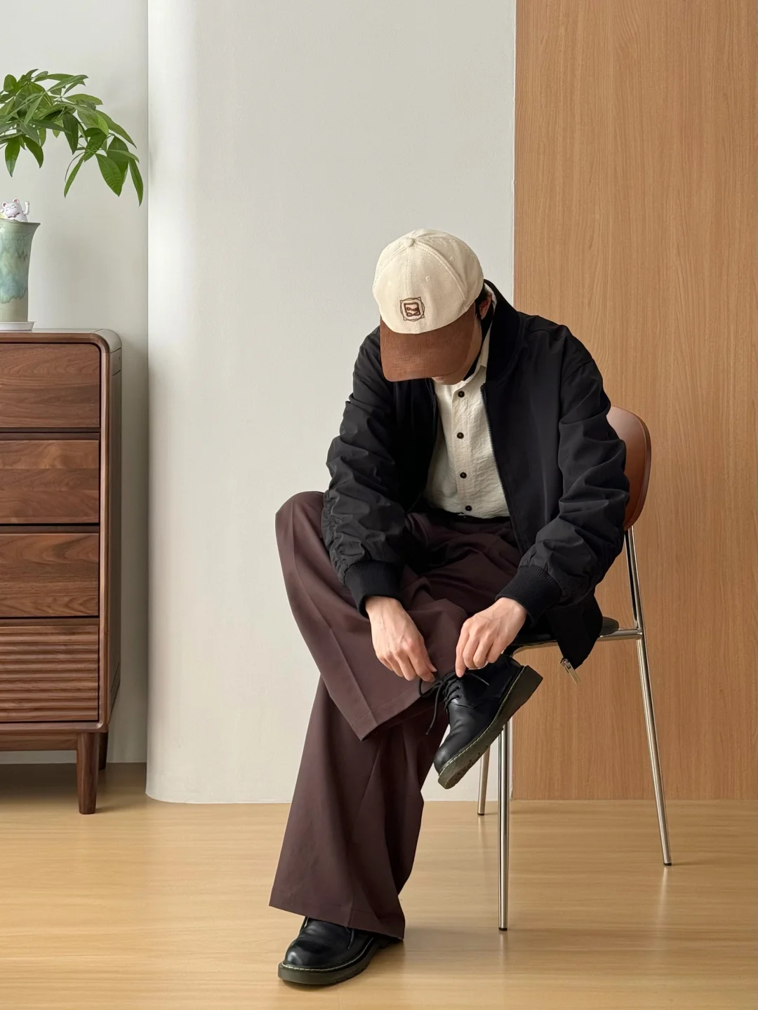 - 黑棕组合还是太权威啦 搭个米杏锦上添花 短宽夹克搭阔腿裤 改善比例,简约利落也舒适~ -