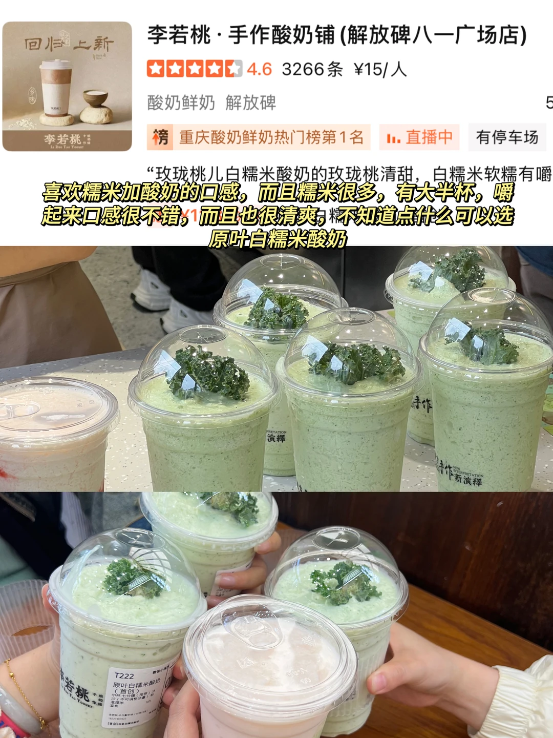 1.李若桃:喜欢糯米加酸奶的口感,而且糯米很多,有大半杯,嚼起来口感很不错,而且也很清爽,不知道点什么可以选原叶白糯米酸奶