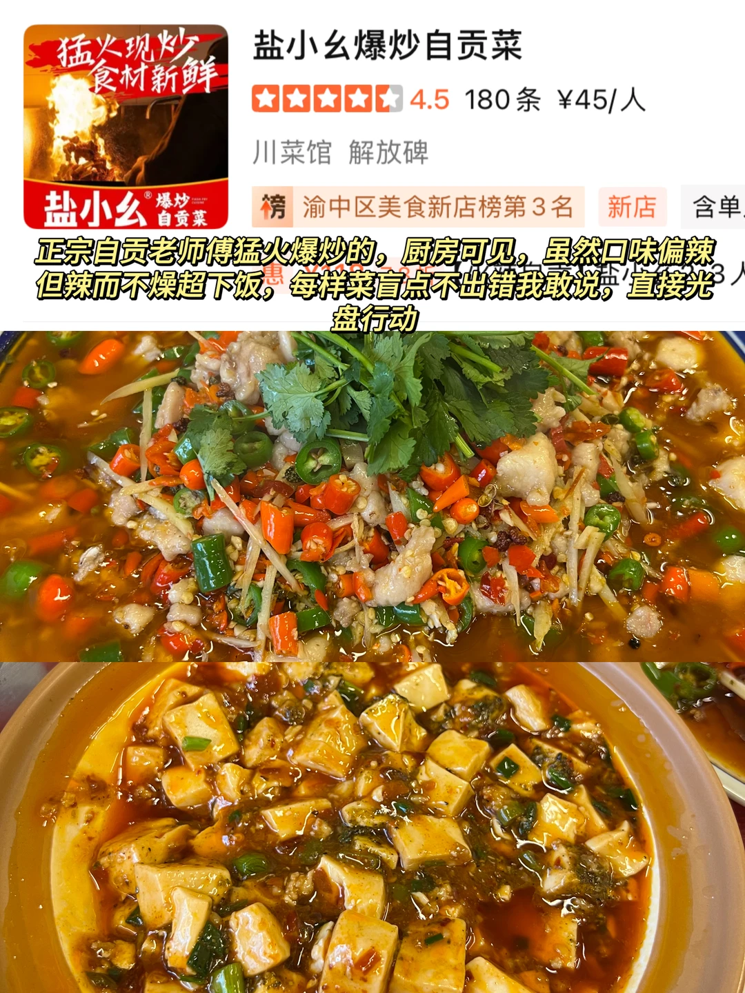 6.盐小幺自贡菜:正宗自贡老师傅猛火爆炒的,厨房可见,虽然口味偏辣,但辣而不燥超下饭,每样菜盲点不出错我敢说,直接光盘行动