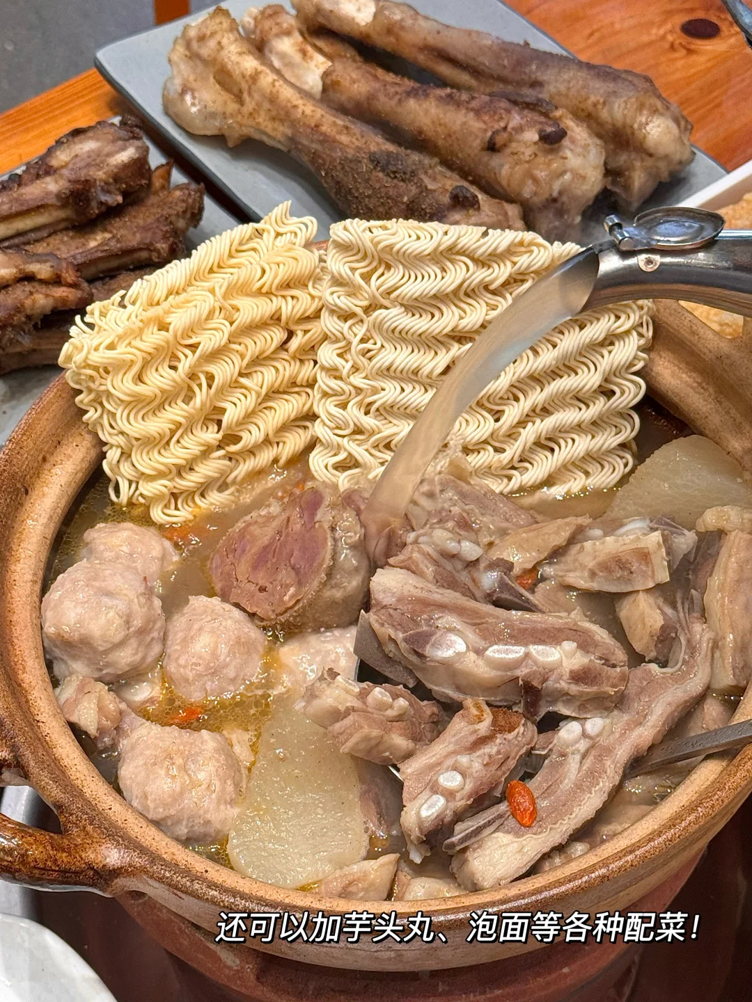 连吃三天!!真的名不虚传!!上海巨🔥的羊肉炉终于在萧山吃到了!就在飞虹路站出来!叫📍蔡记天山羊肉炉)附近居民都会来吃的!! 炭火炉子慢煨出来的羊汤、炖得软烂的羊肉…好鲜好嫩一点都不膻,在杭州真的没有对手! 我们还煮了两份泡面进去,来一口羊汤瞬间从头暖到脚🤤羊排羊肉巨巨鲜嫩,肚包肉、芋头丸…不管是空口吃还是蘸麻酱都是一绝! 求求了,别再去那些网红店排队了😭这里不香吗??