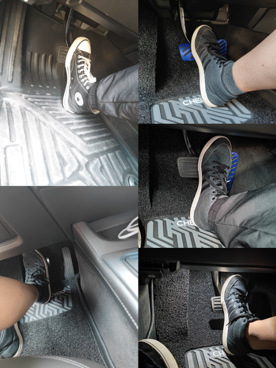 第三点是刹车硬行程短,因为要比日系德系的硬,所以用力要大,因为脚下还有斜坡的设计,导致一用力脚后跟会往里滑,在缓抬刹车的时候尤其难受,因为支点前移,脚背要崩的更厉害才能控制刹车抬起