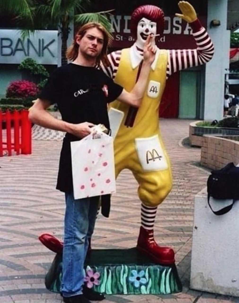 【来自投稿】1992年 美国歌手科特·柯本在新加坡一家麦当劳餐厅门口 1994年 科特·柯本自杀身亡,年仅27岁 2008年《滚石》杂志将科特·柯本列为有史以来最伟大歌手第45位