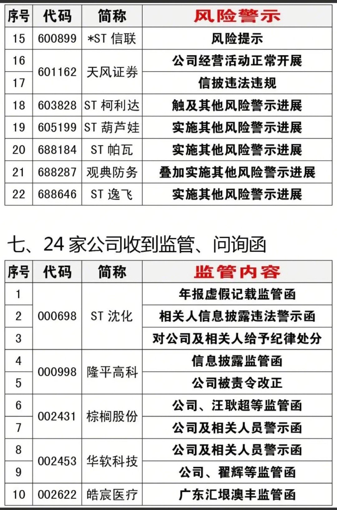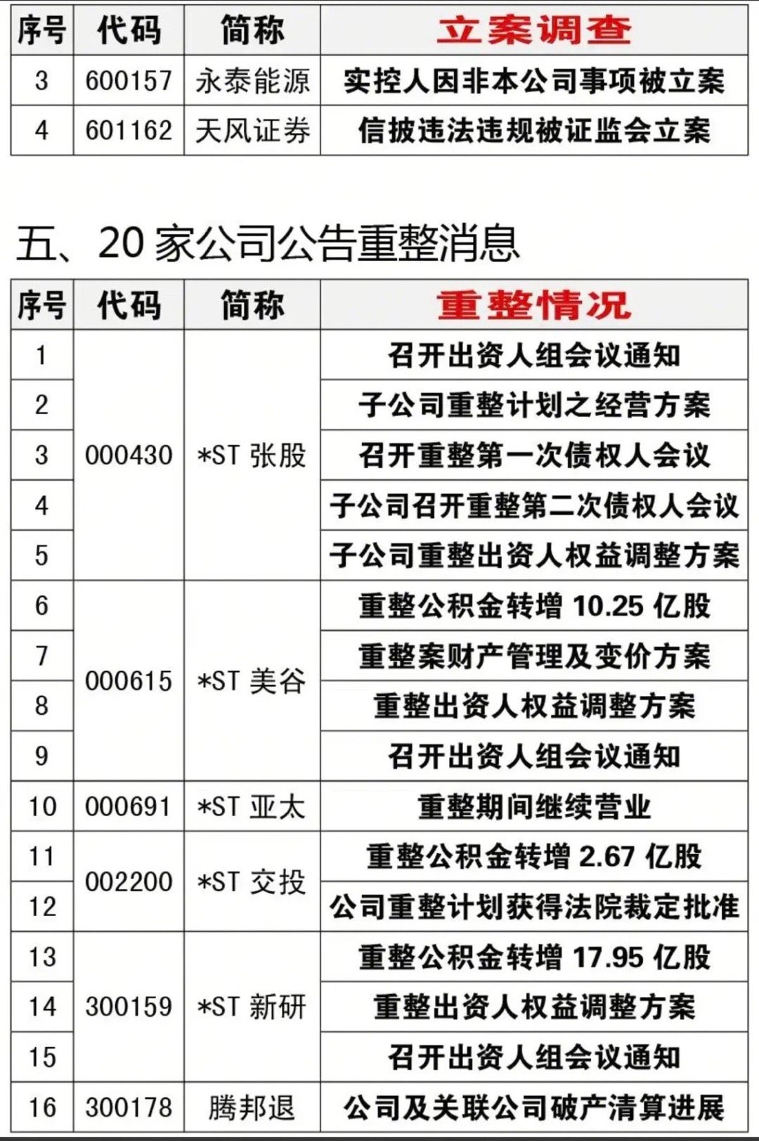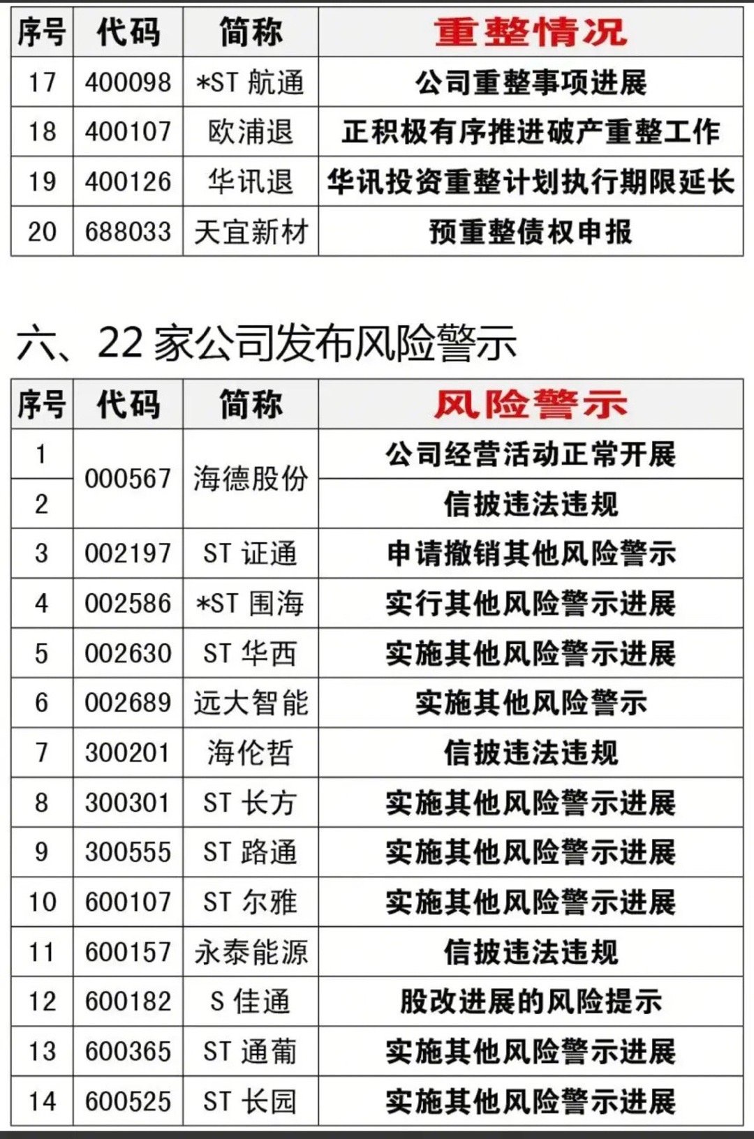 11.29周六 最新:立案、重整、退市风险提示公告!4家公司倍立案调查20家公告重整消息24家收到监管,问询函22家发布风险警示、