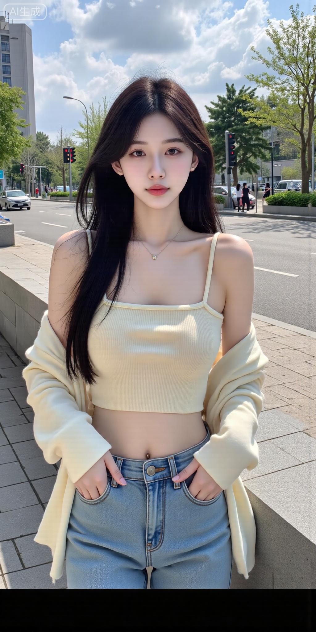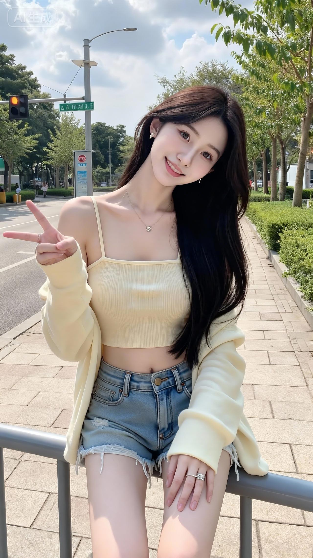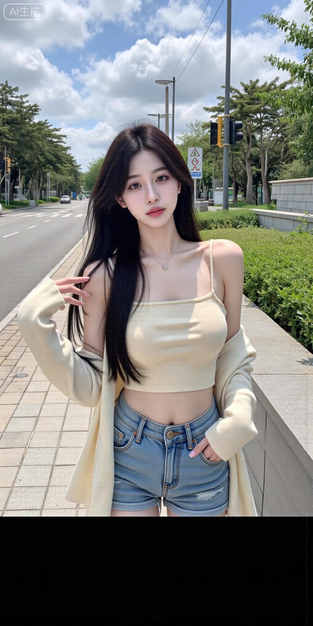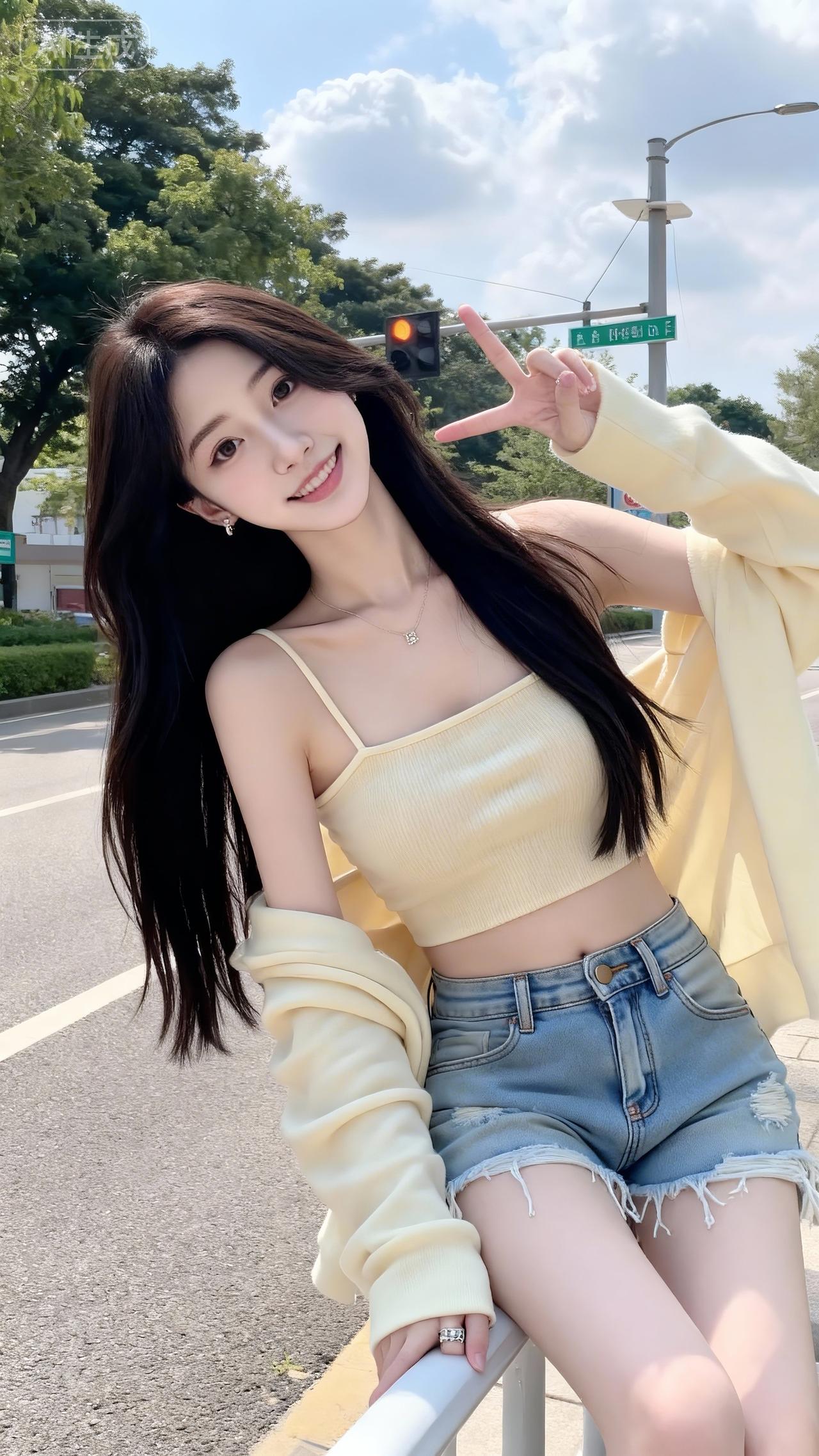 奶黄吊带+牛仔短裤,街头甜妹感拉满吊带牛仔裙穿搭吊带长裤穿搭吊带短裤穿搭