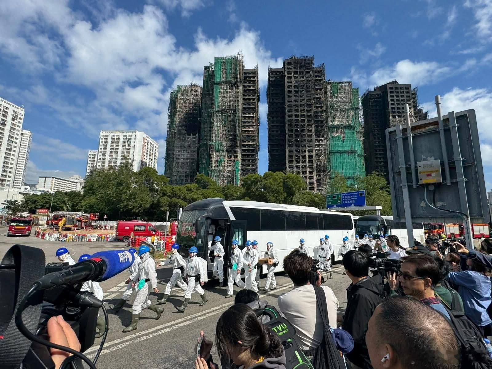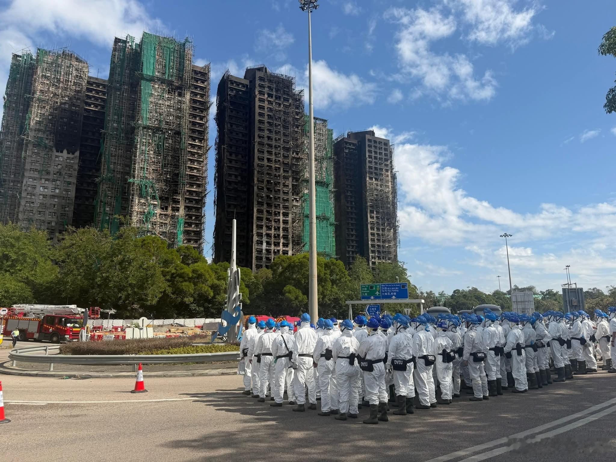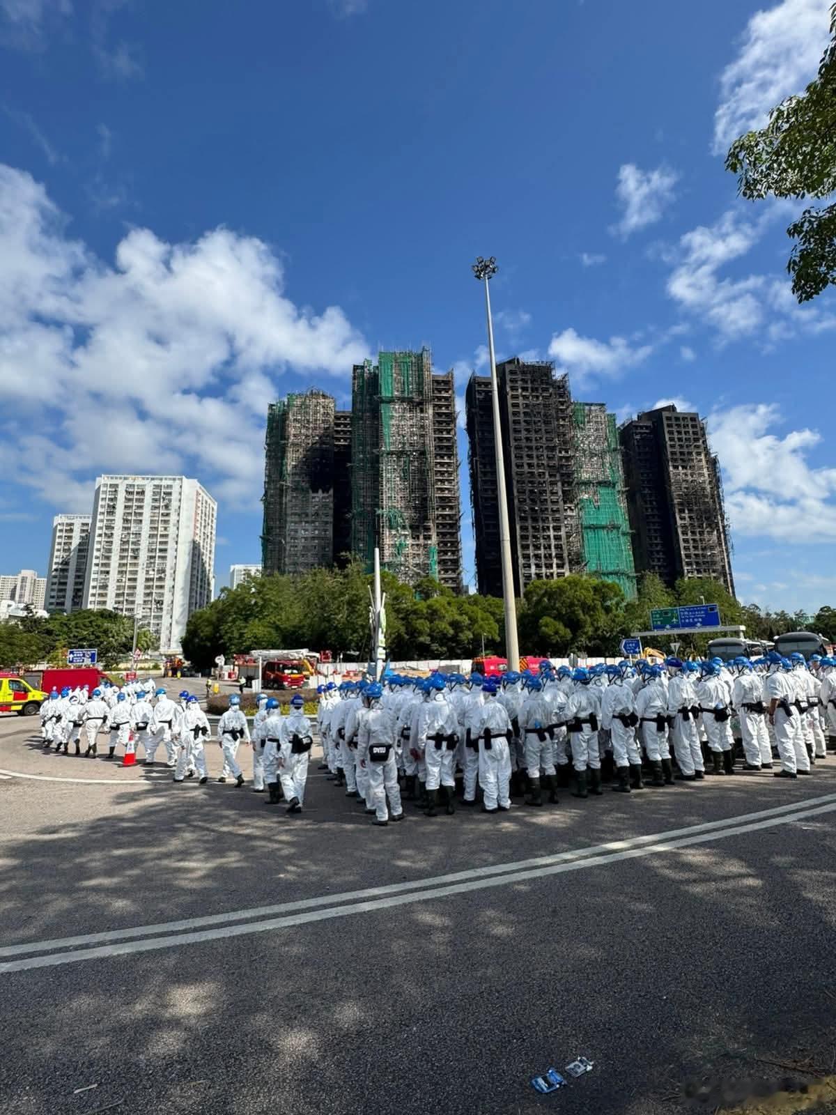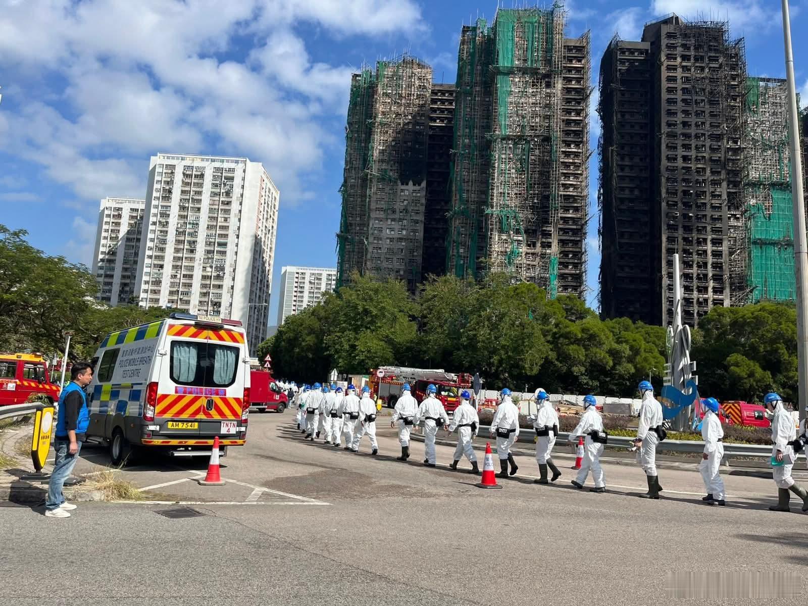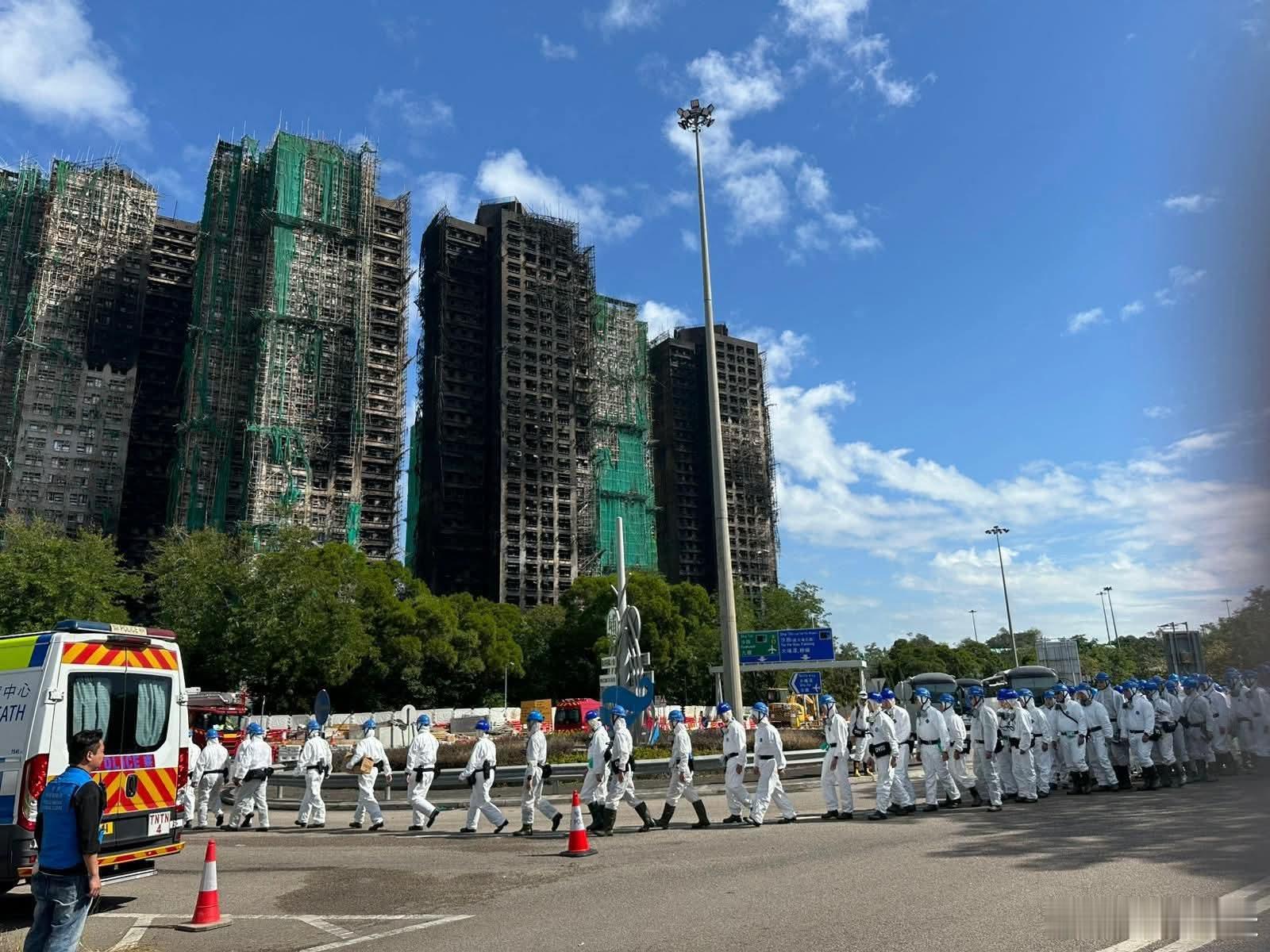 香港大火基本扑灭后,灾害遇难者辨认组进入受灾大厦开展工作。香港火灾仍有150人失联香港大火后老人发呆眼神让人心痛