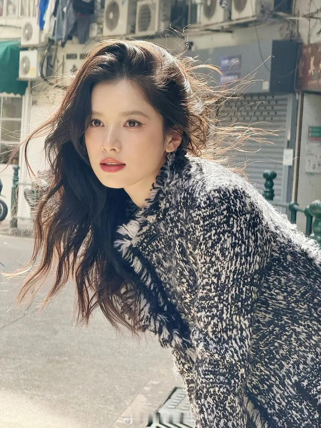 张婧仪~Celine时期海报特别喜欢这个妆造,完全把她的混血感展示出来了。宽肩穿