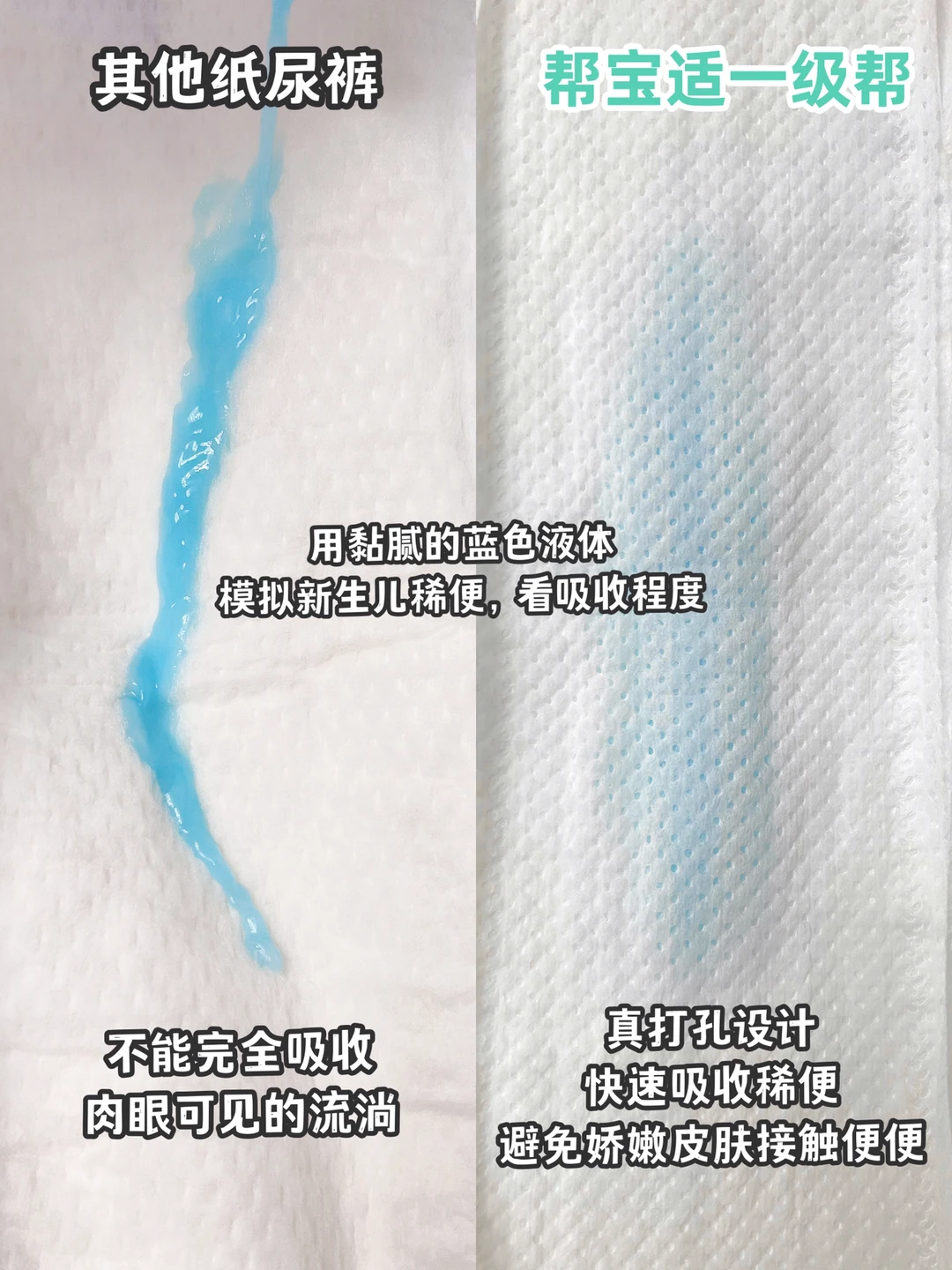 🔹我宝新生儿时期也换过6、7款纸尿裤试用装,吸便效果尽不相同;其他尿不湿表面都是印花设计,其实并不是真的孔,但是帮宝适一级帮👉真打孔的设计不是盖的,吸收稀便超迅速,来不及滑下去就吸收,不会让宝宝皮肤一直接触便便,减少皮肤刺激,第一次用真的有被惊艳到!