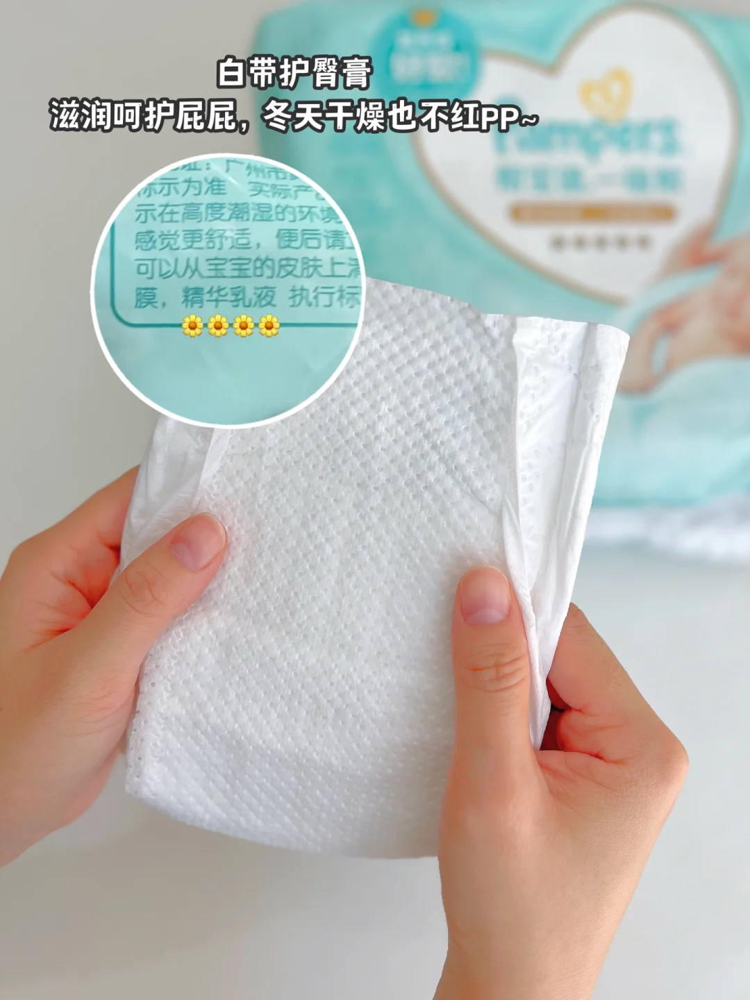 🔹再加上帮宝适一级帮的表层自带了刚刚好量的护臀霜,在现在这种干燥的冬天,正好形成一个滋润的保护膜保护屁屁,减少宝宝红屁屁的情况。也足够透气,就算冬天开暖气也很干爽,不会闷汗💧。