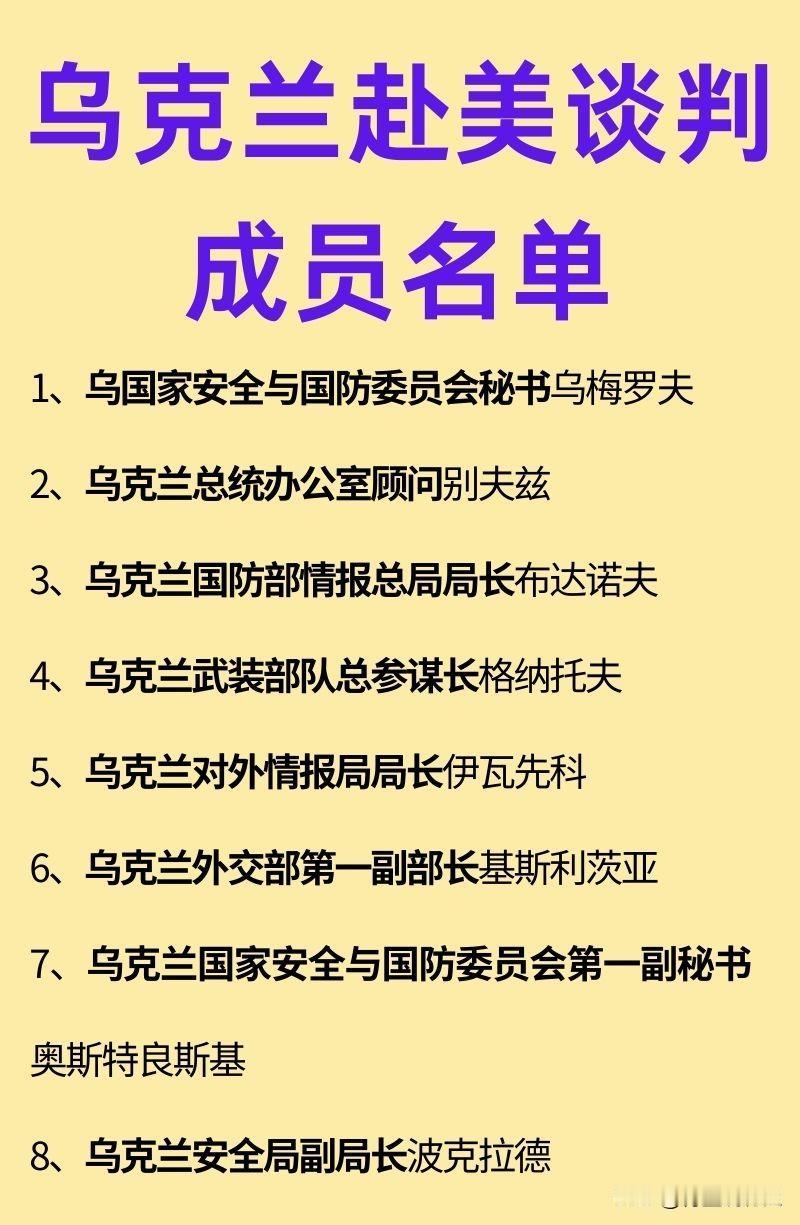 乌克兰赴美谈判代表团成员一览! 近日,乌克兰代表团就俄乌问题,赴美进行谈判,你没看错,是去跟美国谈判;代表团的成员中有军队的、有情报战线的、有外交领域的、也有总统办公室的,看得出来他们还是很重视这次谈判的; 通过谈判,以和平的方式解决战争当然是好的,但问题是,你是跟俄罗斯打的仗,结果却跑去跟美国谈判呢?这谈得着吗?再说了,你就算跟老美达成一致,不还得经过俄方的同意吗?