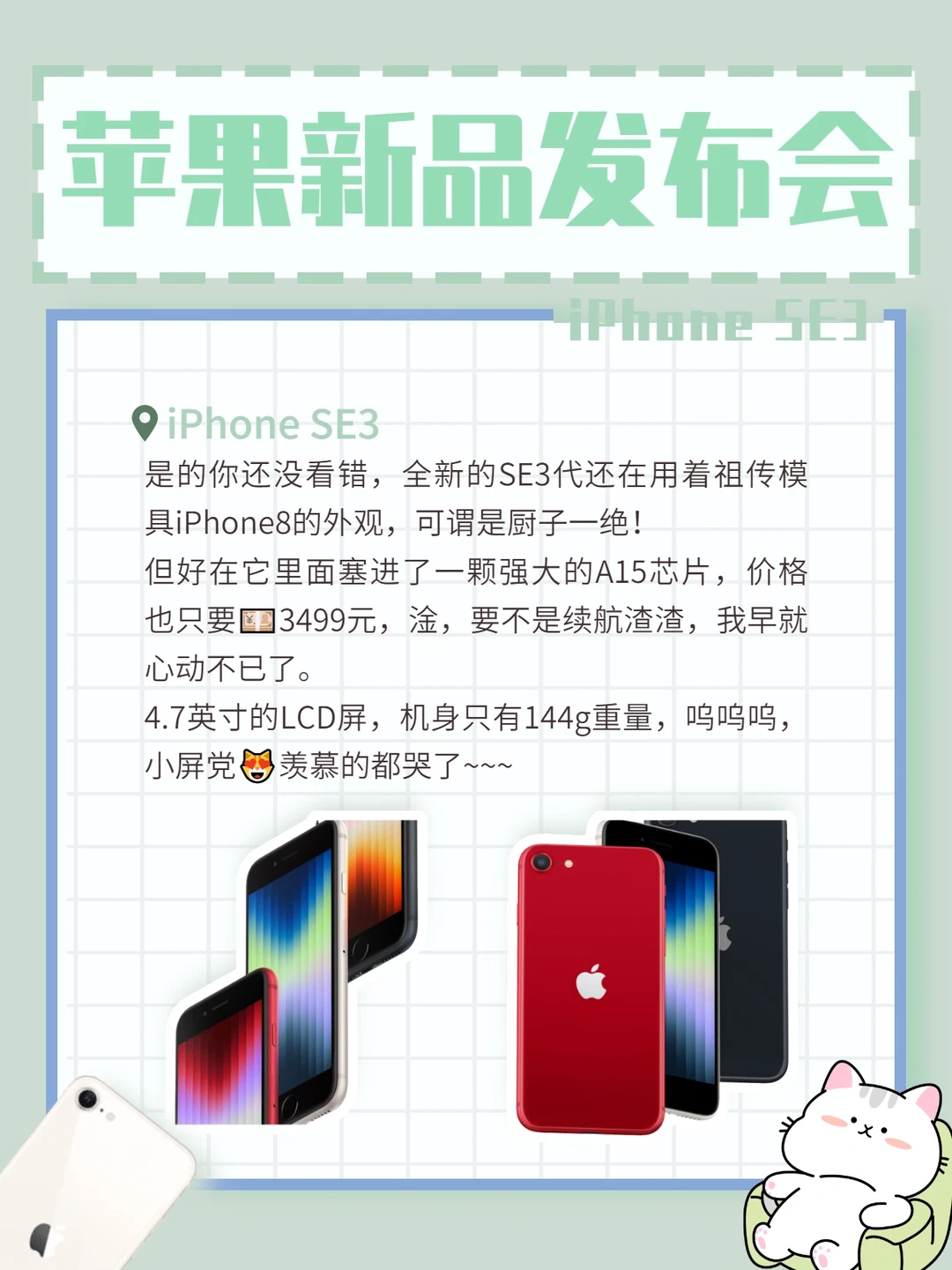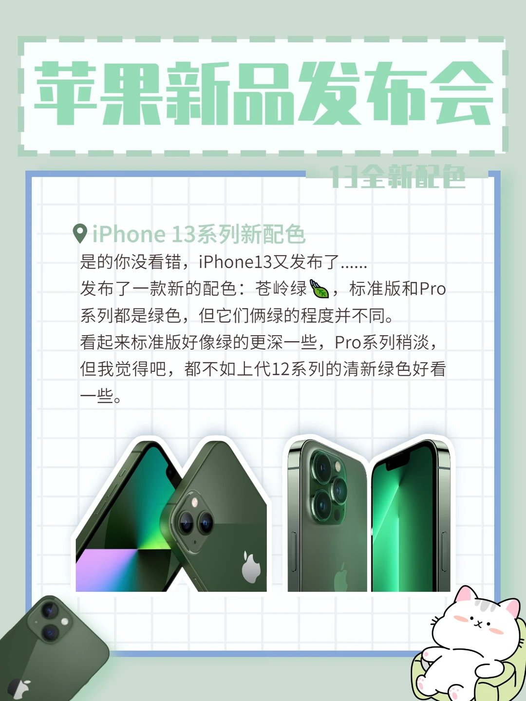 2022年苹果🍎的第一场春季发布会如约而至,厨子为我们带来了全新的产品和配色,它们分别是: 1⃣️iPhone13系列新配色 是的你没看错,iPhone13又发布了......发布了一款新的配色