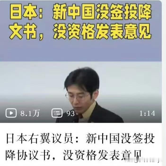 日本右翼议员:新中国没签投降协议书,没资格发表意见! 这个日本右翼议员的言论,