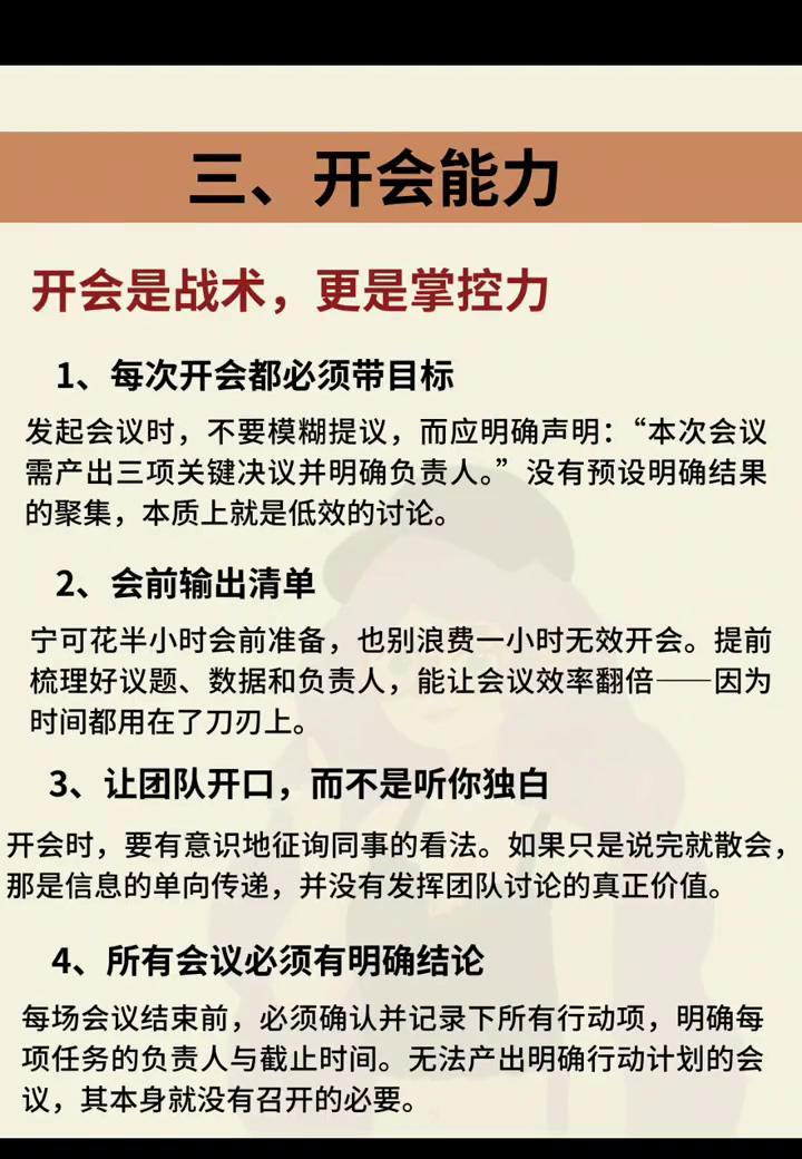 你是不是也觉得,管人越来越难了? 不是人难管,是方法老了。 现在想当好一个管理者,光靠经验不行了。 得会结构化表达,把话说清楚。 得会系统性解决问题,别总救火。 还得会开高效会议,别让时间都浪费在扯皮上。 现在的管理,拼的是思维效率。 不是你多努力,而是你怎么想、怎么说、怎么干。 别再靠感觉做事了,得用工具和方法论。 比如用PREP结构汇报,用A3报告分析问题,用DACI分工明确。 这年头,不会这些,你连跟上节奏都难。 管理不是控制,是激发。 不是靠权威,是靠能力。 现在不学点新东西,迟早被时代甩开。