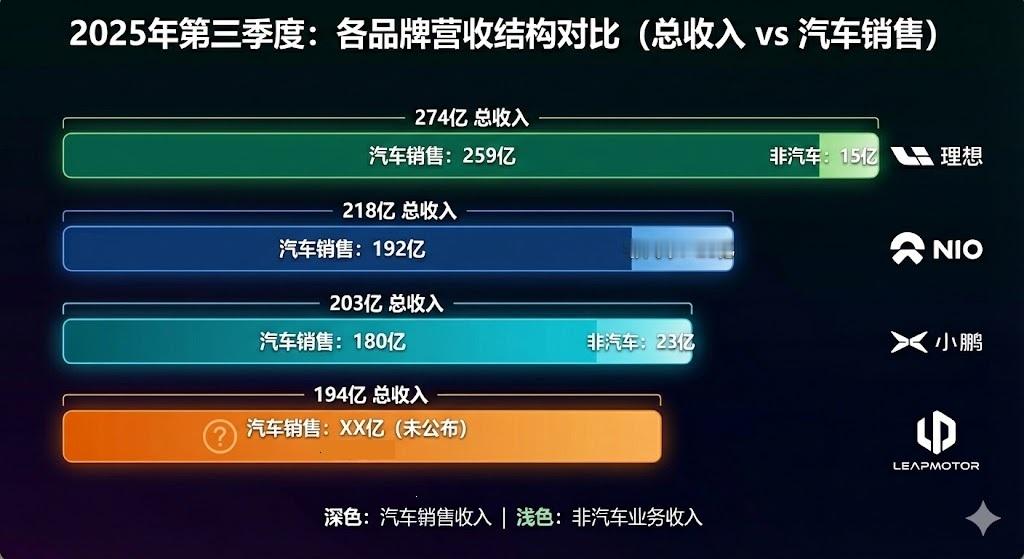 蔚来小鹏理想零跑三季度财报对比用Ai做了对比图更直观一些数据没有核对如果错了请指正蔚来小鹏理想汽车零跑