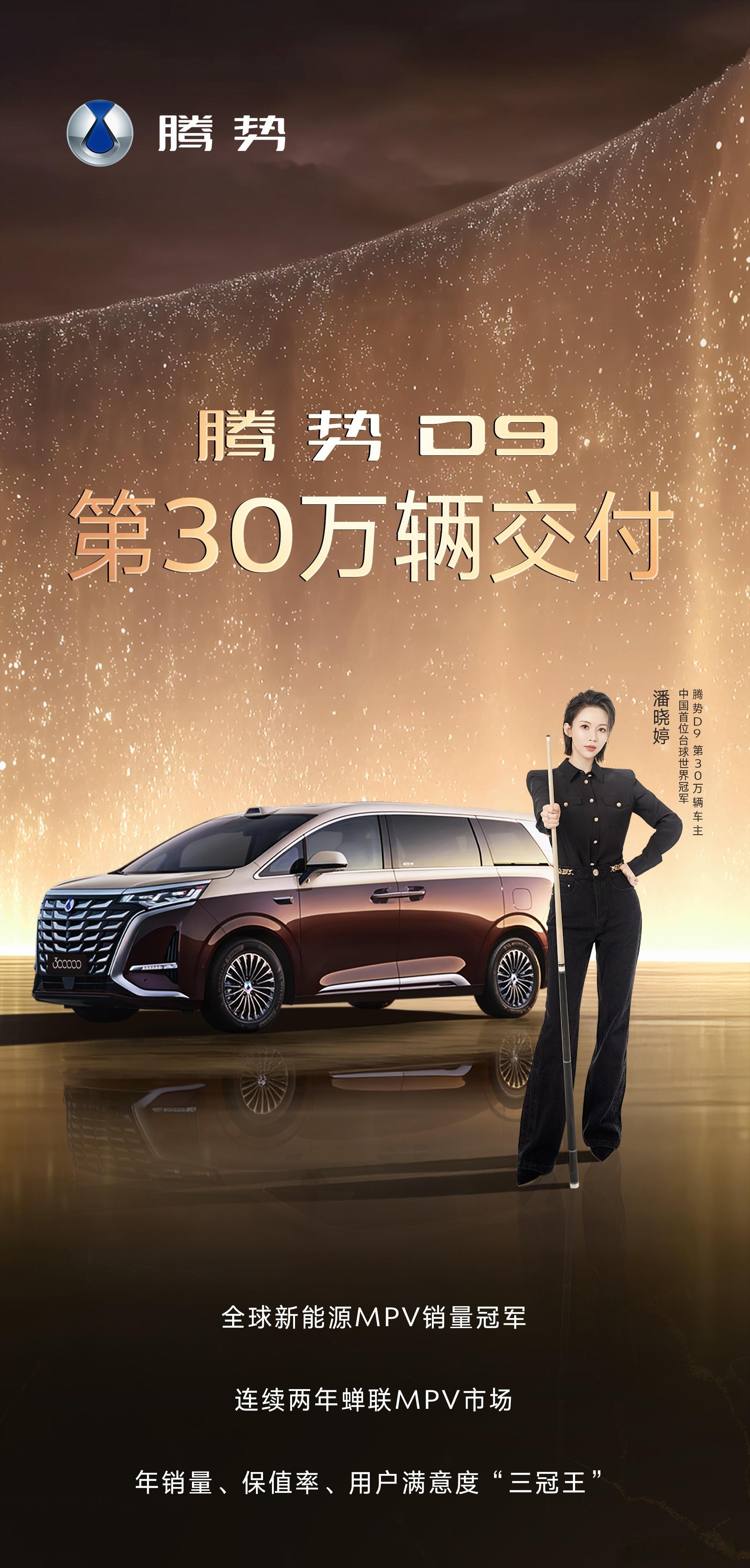 “九球天后”潘晓婷成为腾势D9第30万辆车主!2025年1-10月,腾势D9累计出口10147辆。