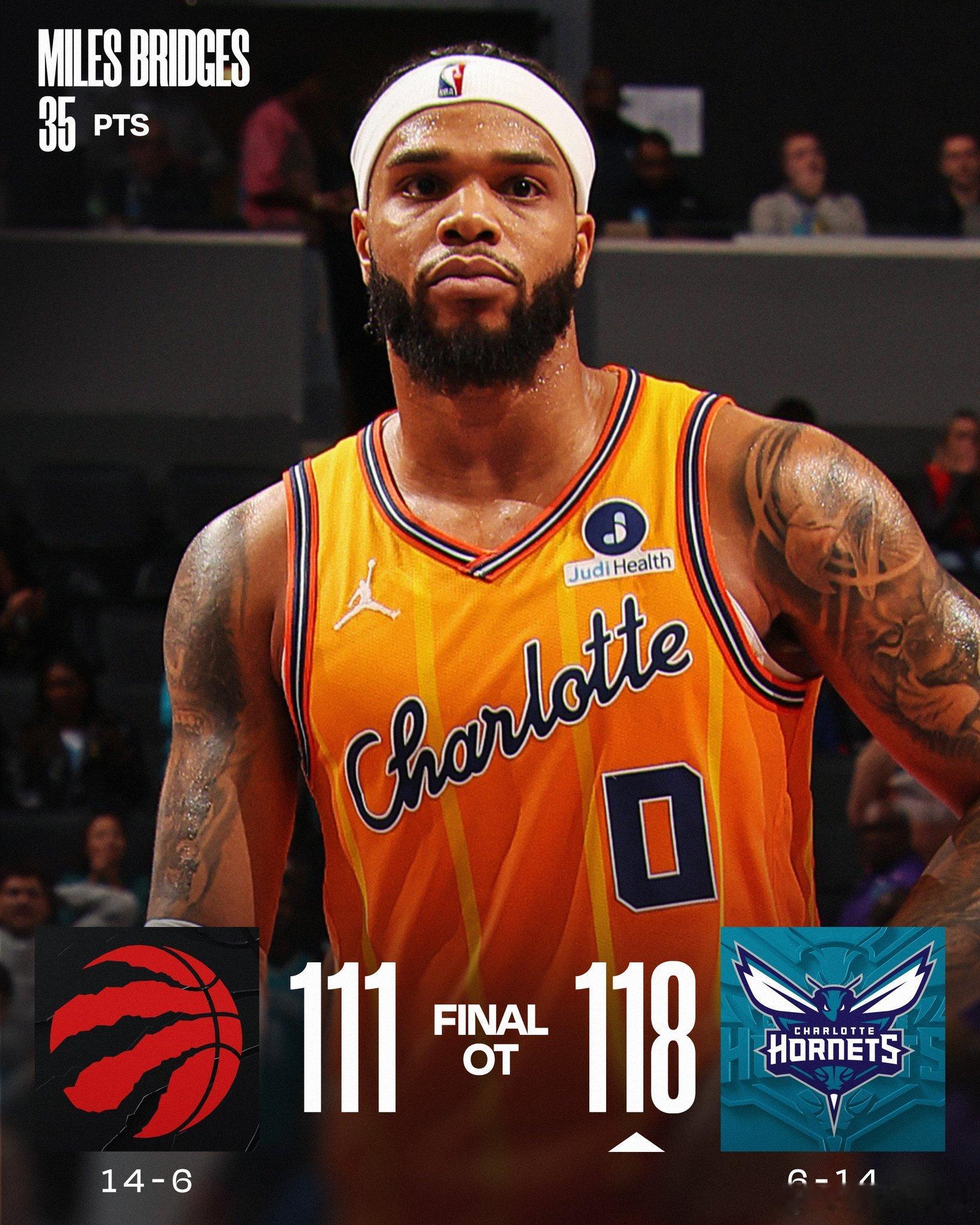 布里奇斯35分黄蜂加时逆转猛龙!黄蜂终结猛龙9连胜!黄蜂终结猛龙9连胜