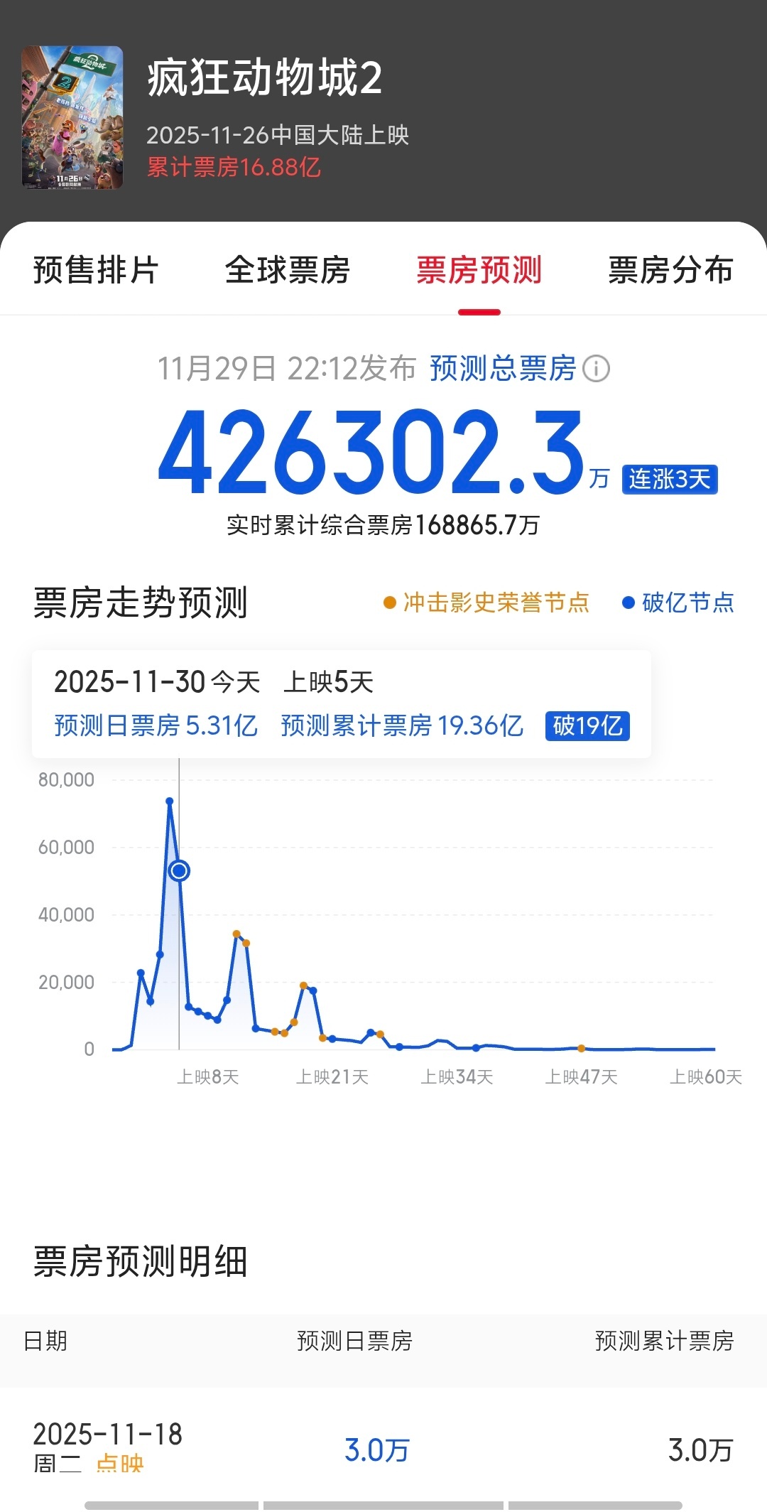 猫眼预测疯狂动物城2票房42.63亿将超越复联4,成为进口片影史冠军疯狂动物城2票房
