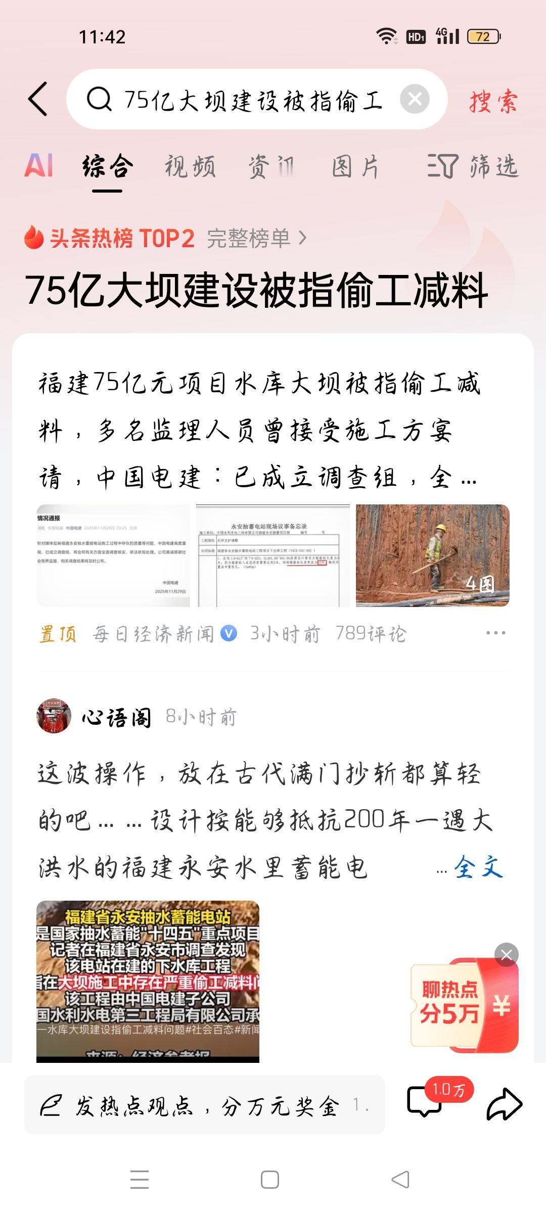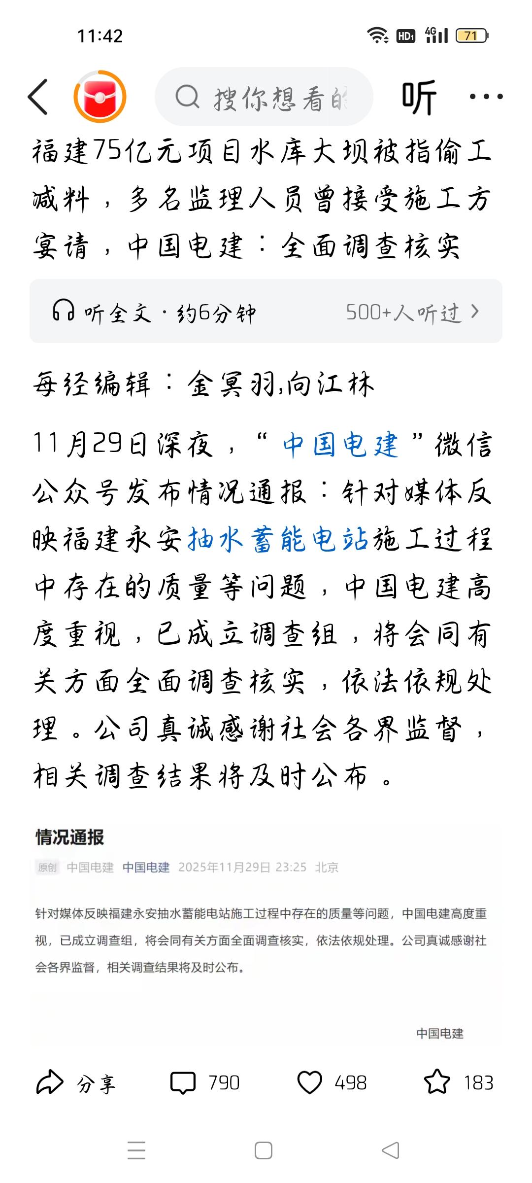 75亿大坝被指偷工减料,我想说 据每日经济新闻报道,福建总投资75亿的福建永安抽水蓄能电站施工过程中存在质量问题,被指偷工减料,多名监理人员曾接受施工方宴请,中国电建:成立调查组依法依规调查,我想说,施工方与监理方肯定存在利益勾结,一定有人中饱私囊,国家投资这么多钱,目的是搞好工程,服务民生。有人损公济私,大坝一旦出现问题,肯定损失不可估量。个人认为,光靠中国电建解决不了问题,要依靠相关纪检机构,揪出蛀虫。予以重罚,各位条友觉得呢?