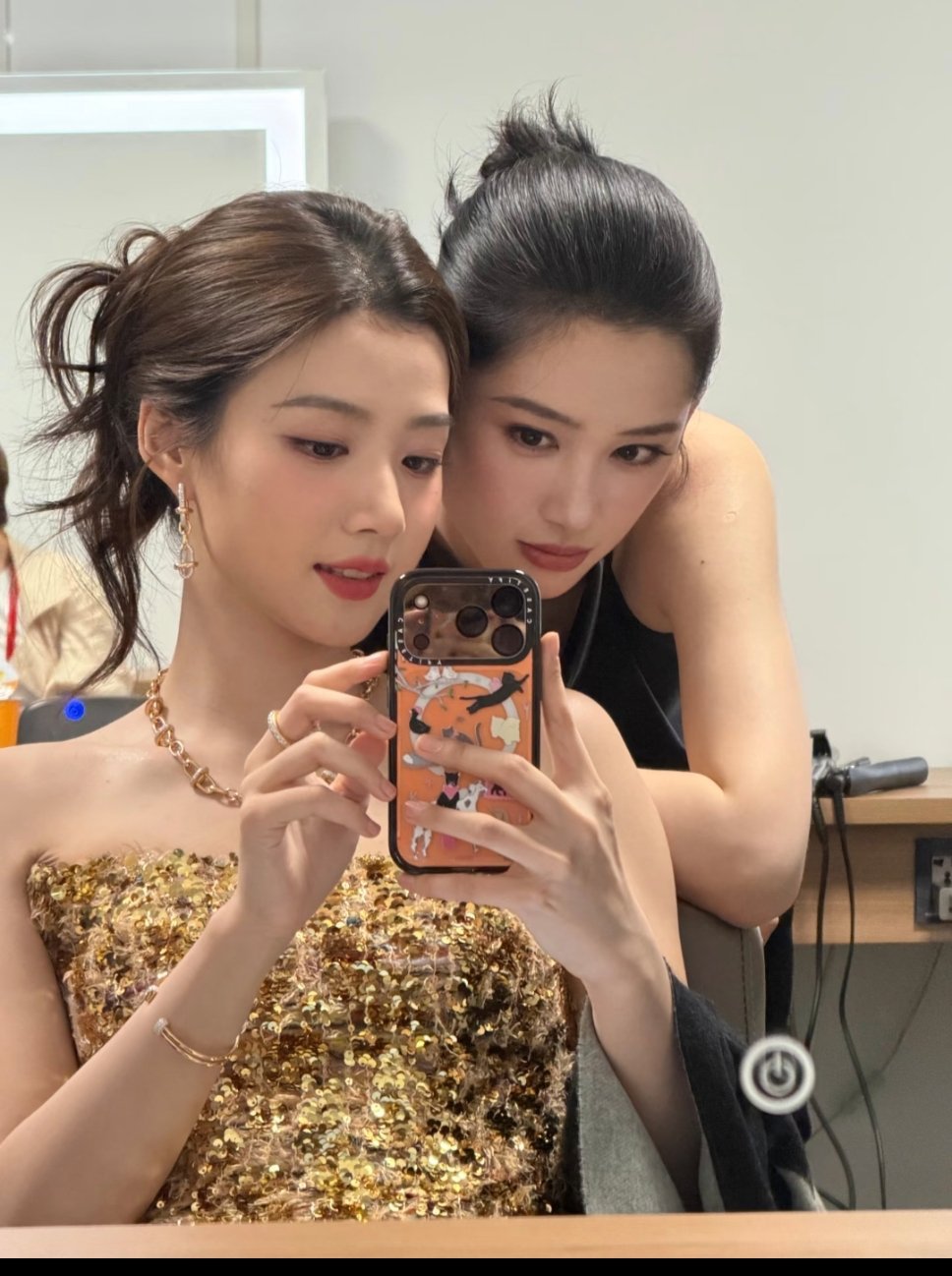 高圆圆旁边这是谁啊??身材好好啊,就是这个裙子的布料……