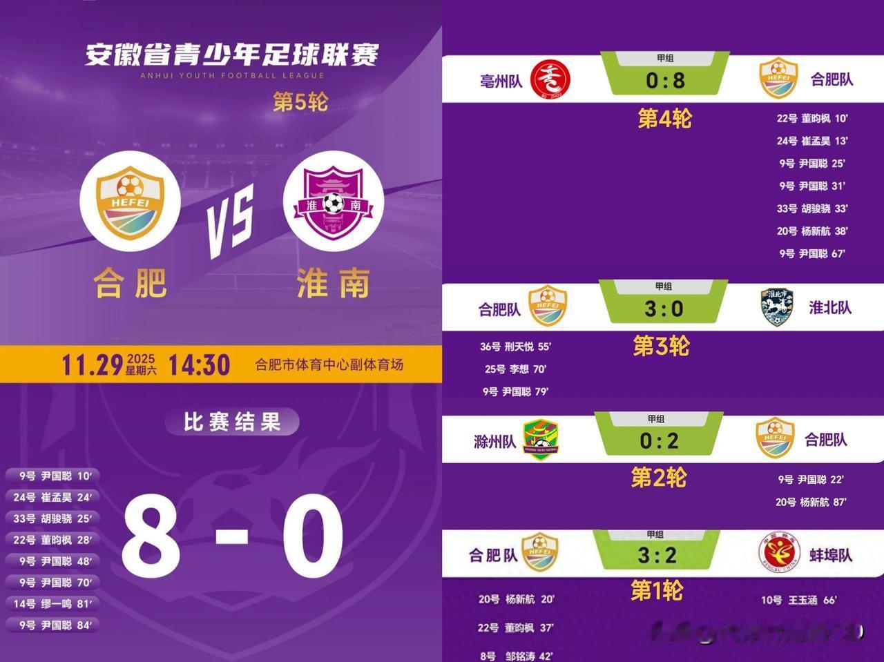 淮南挺了85′,还是被熔断! 合肥8:0亳州,又8:0淮南~徽青赛不能再踢了,伤自尊! 在昨天进行的一场徽青赛比赛中,合肥队在第85分31秒时打进了本场第8粒进球,比赛按熔断规则随之终止,合肥队最终在主场8:0狂胜淮南队~这是徽青赛第2场被熔断的比赛。 在上周末,合肥队在第79分26秒时灌进了亳州队第8粒进球,比赛也随之结束,徽超首个熔断比赛诞生。 目前,合肥队保持着巨大优势坐稳积分榜榜首,而淮南队和亳州队继续垫底。 徽青赛 安徽身边事 一起聊聊足球 作为一个安徽人,你喜欢省会合肥吗