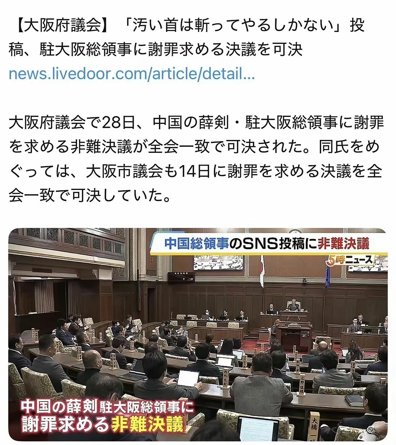 小日本坚持撒野,打的就是你! 11月28号,日本大阪府议会通过决议,要求中国驻大阪总领事薛剑公开道歉。14号,大阪市议会也曾通过决议要求薛剑道歉。 小日本鬼子倒打一耙!明明低市晚苗挑衅在前,薛剑回击在后,你不撤回,你不道歉,而是在错误的道路上继续撒野,除非找死!