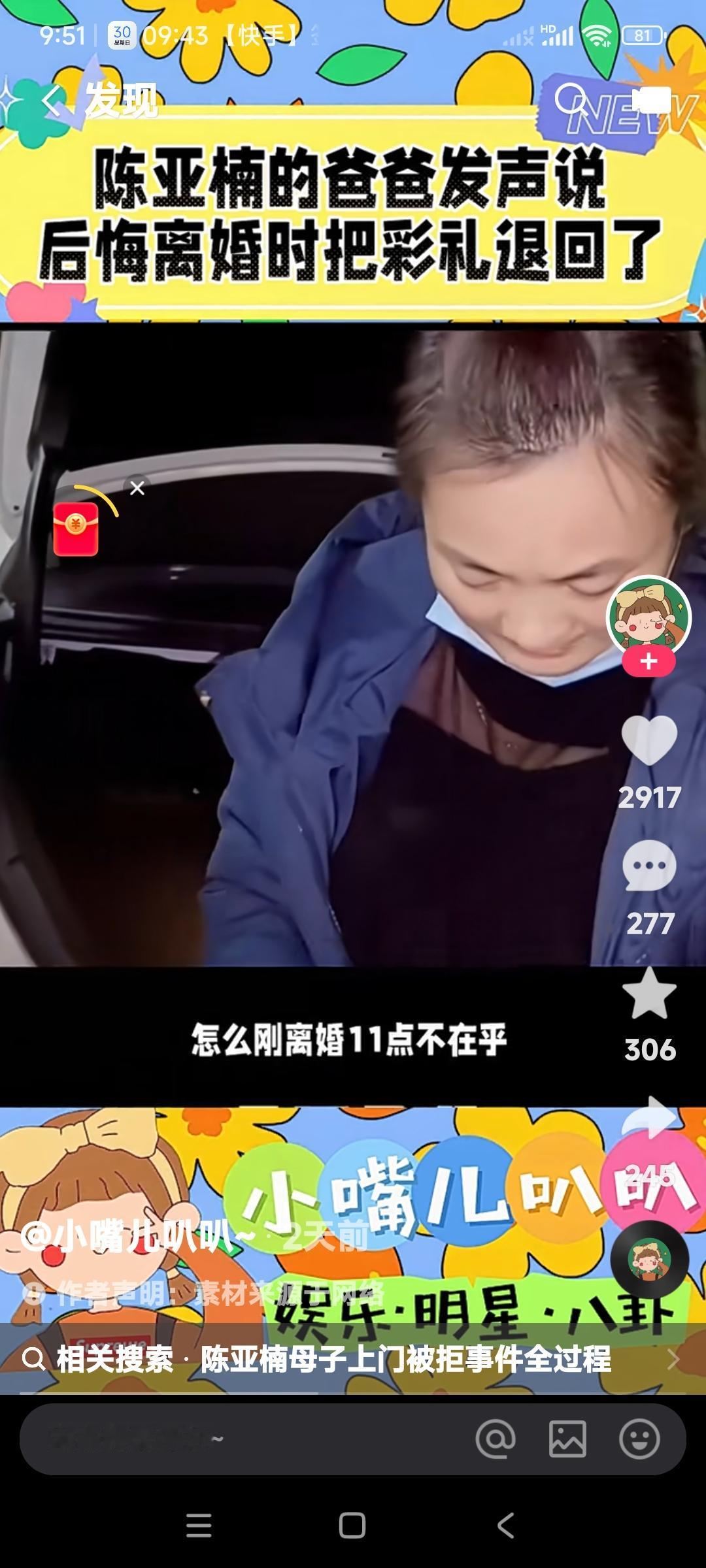 陈亚楠这彩礼退的豪横。 那时候的陈亚楠,以为自己好厉害,那时直播带货是真能赚钱呢。 当时就理直气壮的把彩礼全部退回给朱家。 以为直播几天就把这彩礼钱全部赚回来。 不曾想离婚了,直播间就没人了。 他要知道是这个结果,还能不能主动退彩礼。 实际不退彩礼,也没人儿说她过分,朱家也不能因为这点儿彩礼跟她闹僵。 陈亚楠太高估自己了。