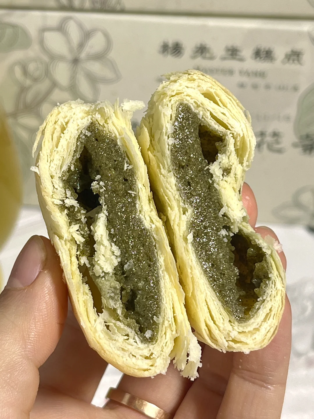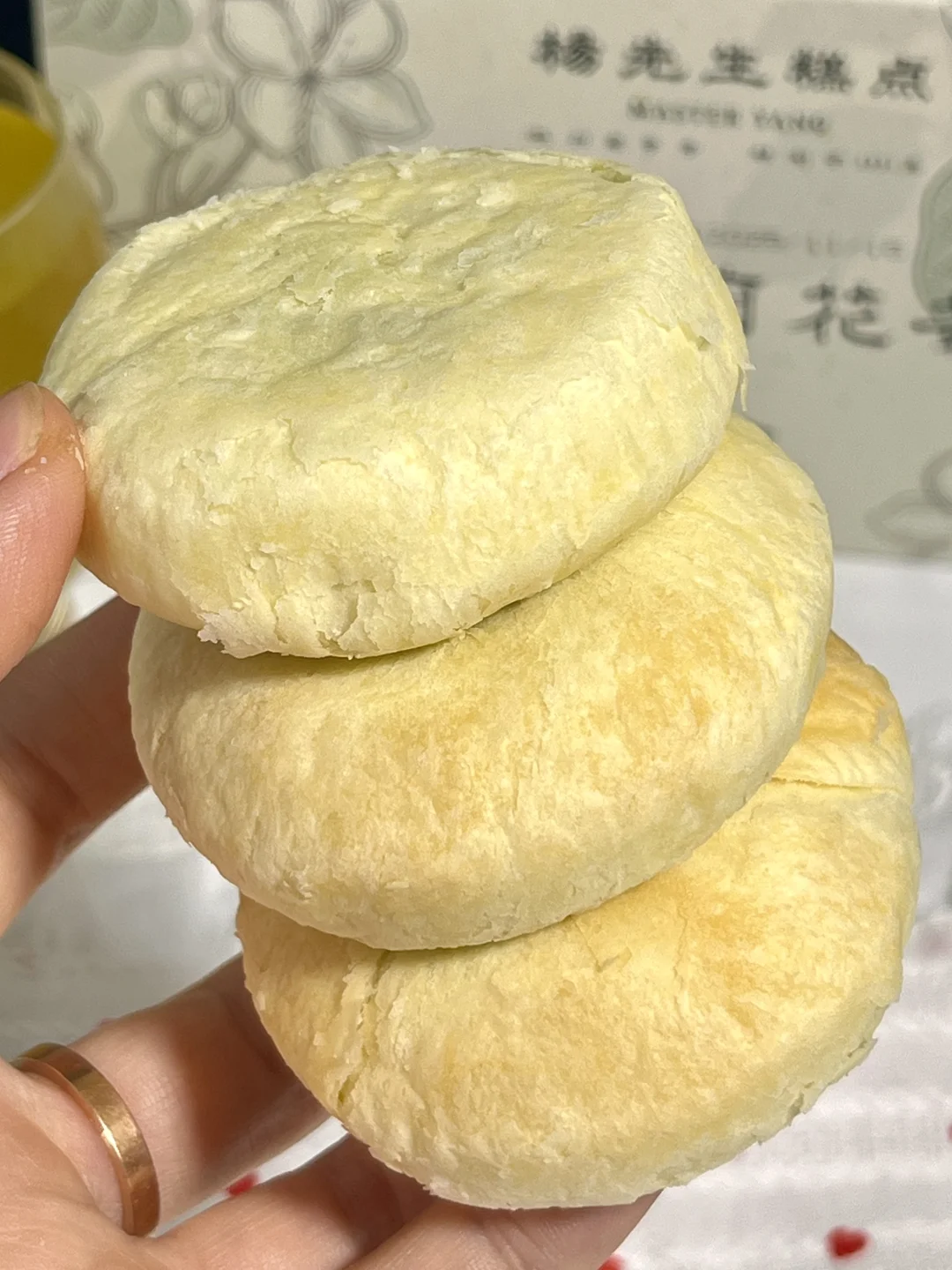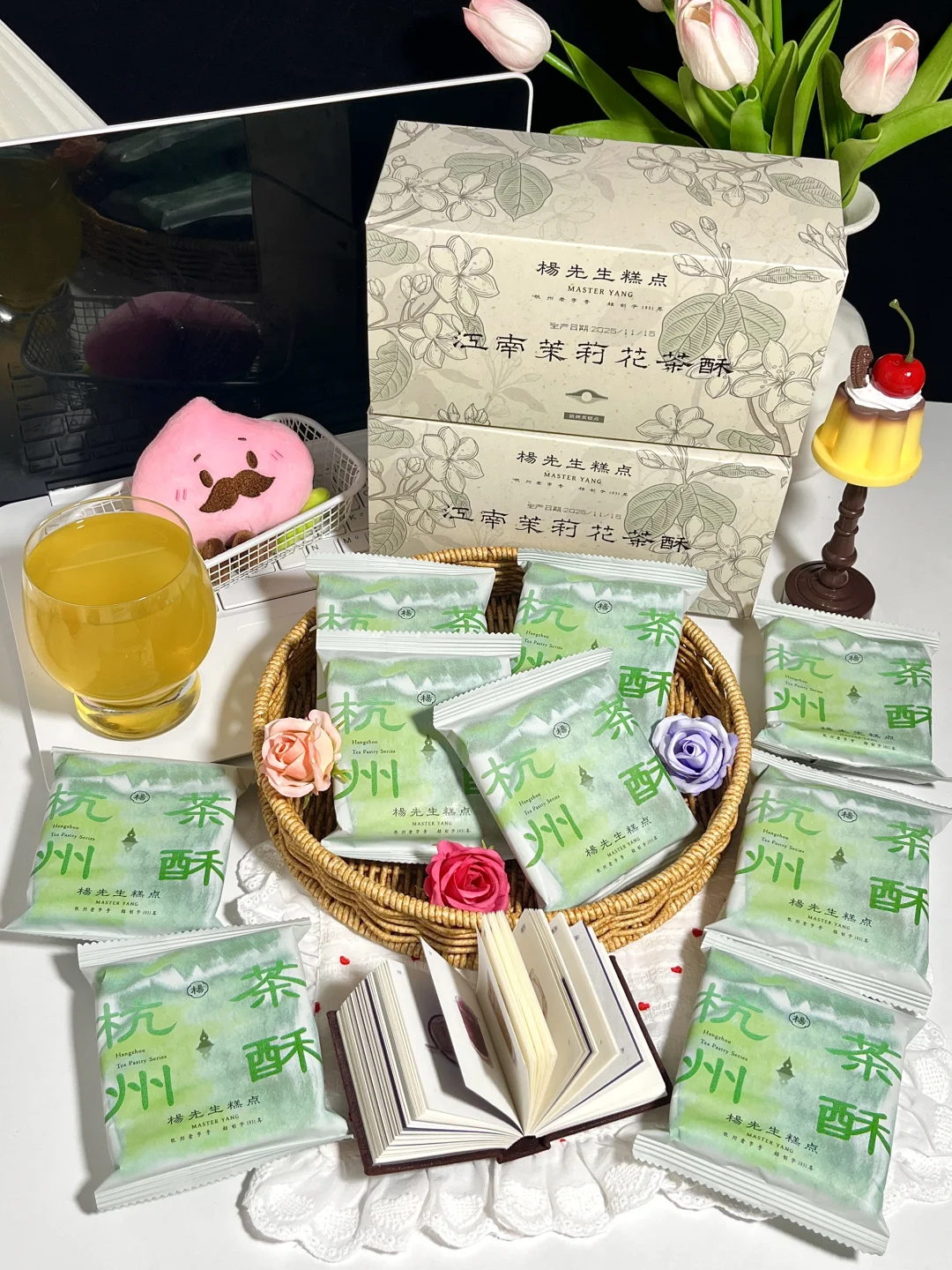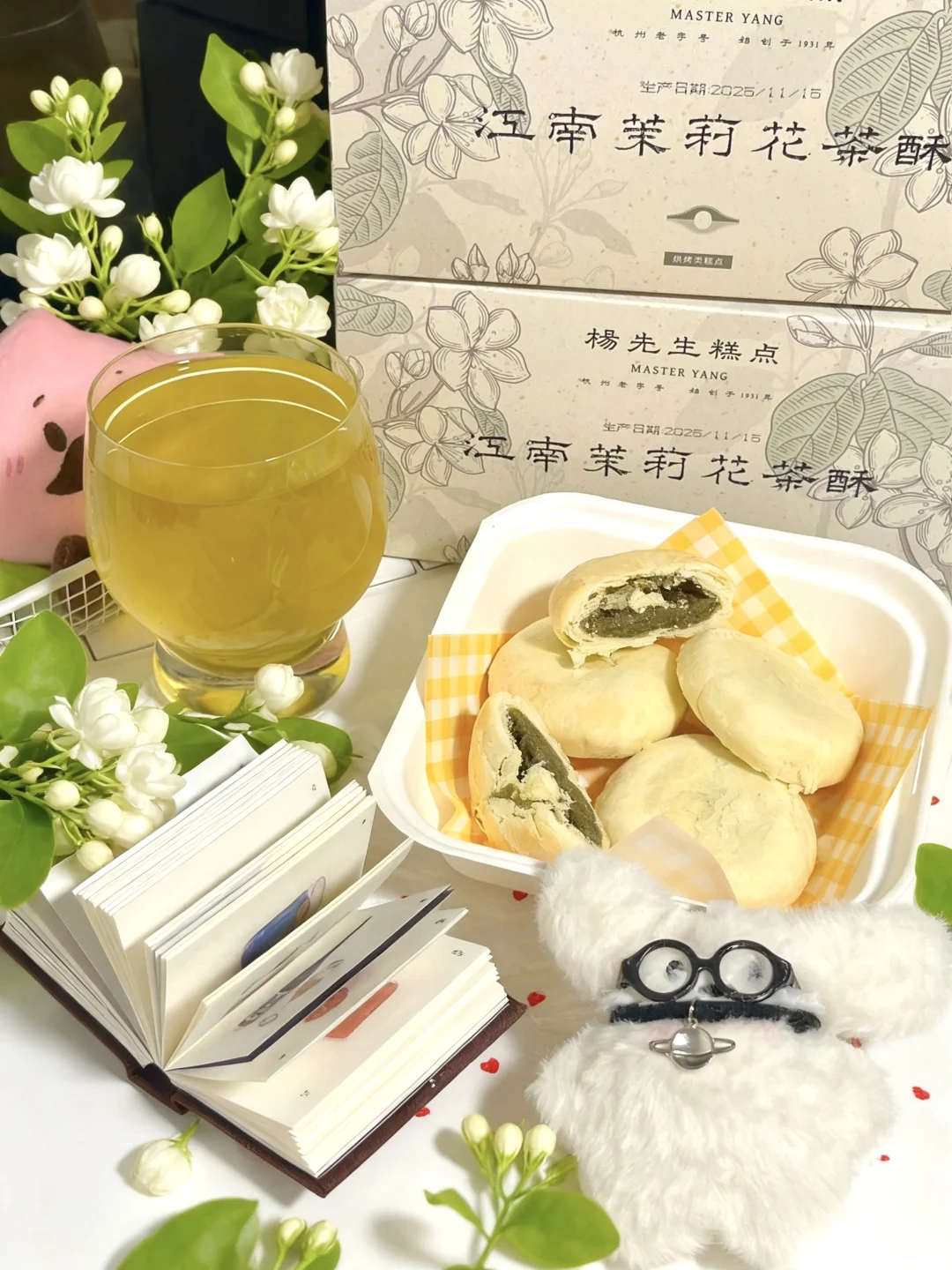 男朋友从杭州带回来的颜值和口感双在线的神仙糕点!茉莉花茶酥! 外皮酥到掉渣,轻轻一咬就簌簌掉屑,里面的内馅带着淡淡的茉莉花清香,甜而不腻,回甘超🐮! 茶味和甜味平衡得刚刚好,吃起来清爽又治愈~ 下午茶炫两块幸福感直接拉满!颜值也很高,奶白的外皮透着淡淡的茶渍,也好出片哇~😋