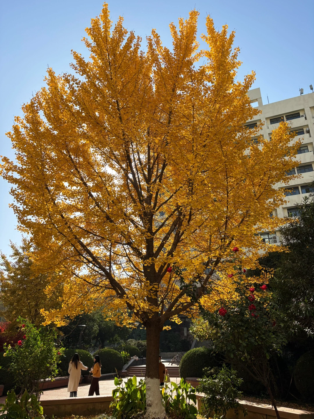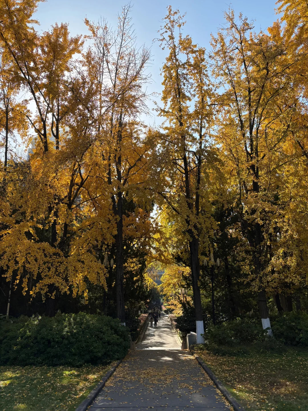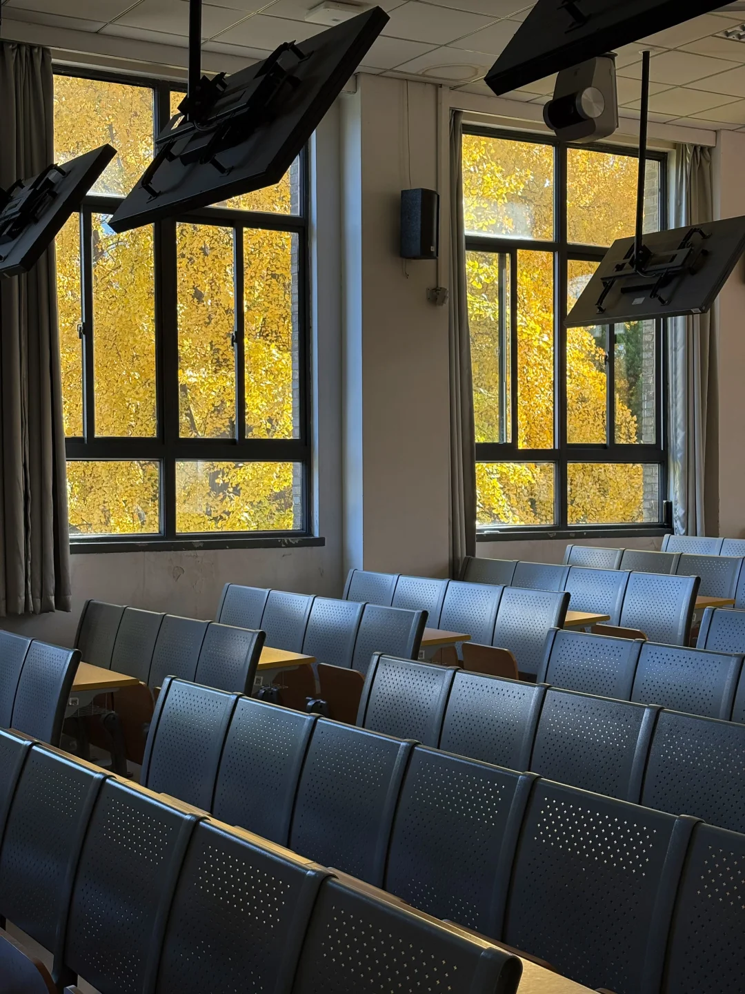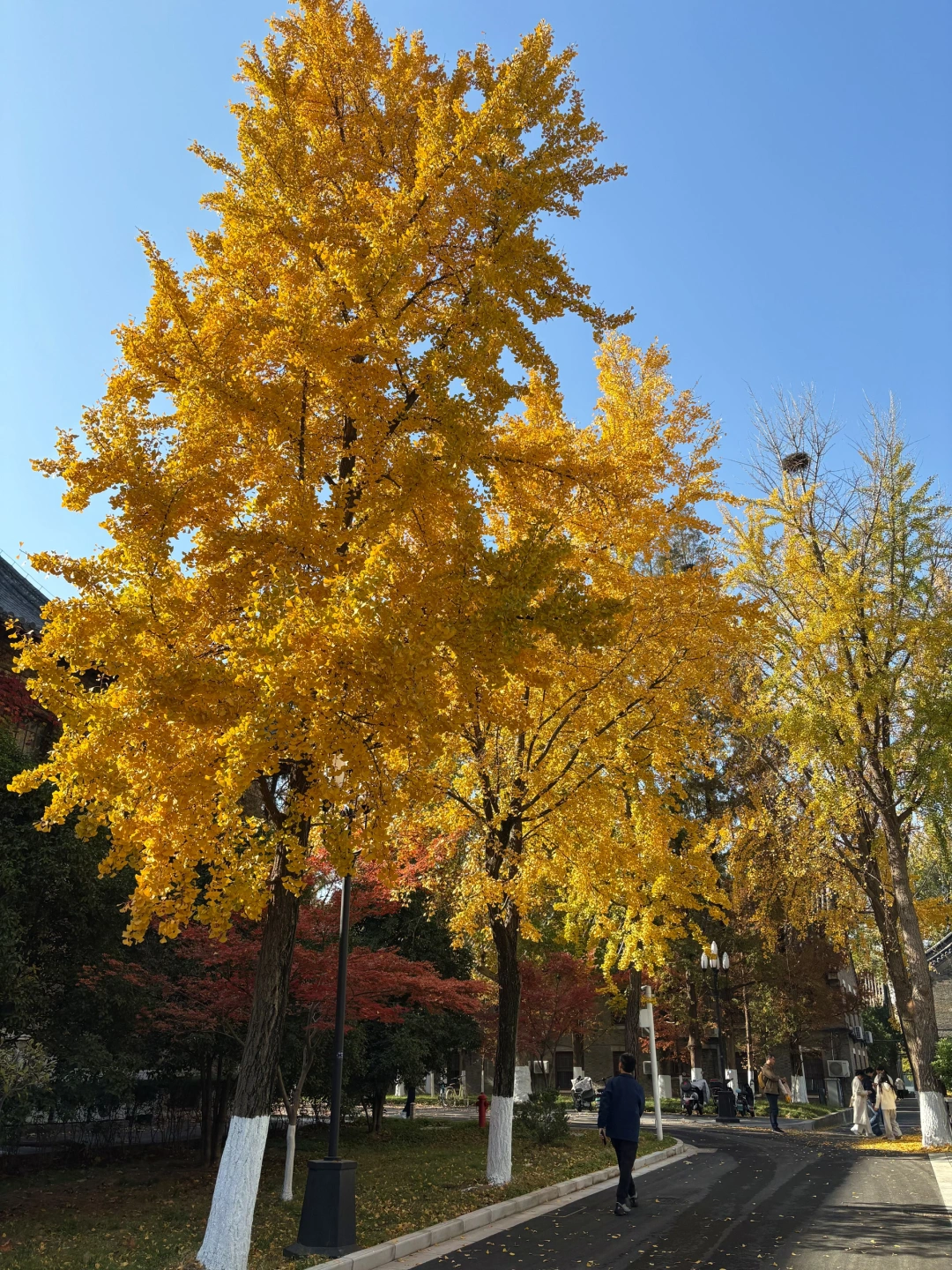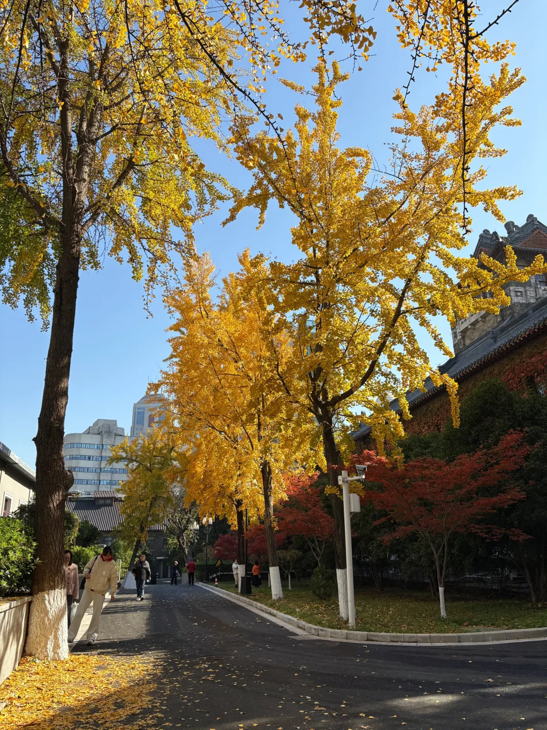 秋天的南大鼓楼校区,太漂亮了。 教学楼201,绝对算是这个秋天最美教室了。 旁边的走廊的窗景更好看,银杏叶的黄、枫叶的红、松树的绿,三种颜色搭配在一起,比调色盘还有活力。 还有北大楼前后、建筑学院门前的几颗银杏树,长势喜人,从路口转角过来,突然看到它们的时候特别惊喜。