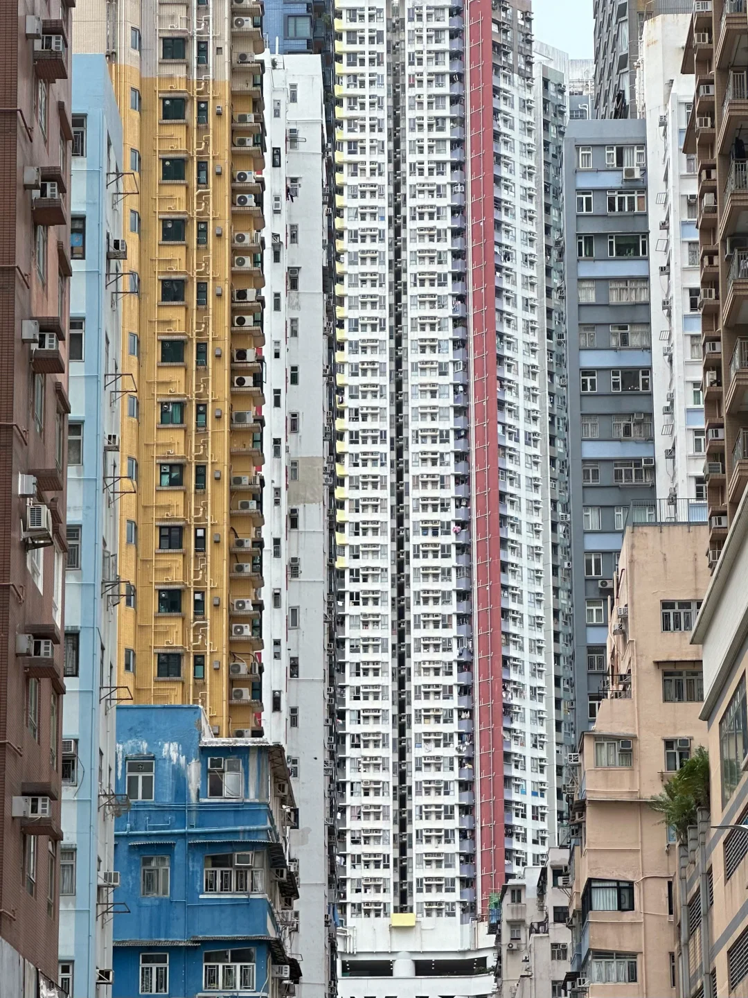 印象中的香港,是王家卫电影里的霓虹光影,是TVB剧里的市井烟火,是维多利亚港永不熄灭的繁华。它经典、复古,充满故事感,像一个活着的梦。 真正踏足这里,我才体会到镜头之外的震撼。站在鲗鱼涌的怪兽大楼下抬头望,天空被切割成细长的蓝色缝隙。密密麻麻的窗户像蜂巢般挤压在一起,晾晒的衣物在楼宇间飘荡,形成一道奇特的风景线。 那一刻的感受很复杂——既为这人类建筑的奇观感到震撼,也为那种无处可逃的密集感到一丝窒息。 当时我只当这里是一个“打卡点”,按下快门,带走了一张张照片,却没能读懂这背后真实的生活。 直到这场大火,烧穿了表象。 新闻里急速蔓延的火势,被困居民的呼喊,救援面临的艰难……我才突然明白,那些我曾觉得“震撼”的密集楼宇,背后是真实的安全隐患,是生命的脆弱与尊严的挑战。 也才知道在这座光鲜的城市里,还存在着劏房、笼屋、棺材房……这些听起来就让人心头发紧的词汇。 很抱歉,以这样悲痛的方式,认识到这个立体的、割裂的香港。 我依然喜欢这座城市,喜欢它不屈的生命力,喜欢它在夹缝中盛放的坚韧。但今天的喜欢里,多了一份更清醒的注视,多了一份更沉痛的祝愿。 愿逝者安息,生者坚强。愿这座城,能在密度与安全之间,在繁华与尊严之间,找到真正的平衡。 🕯️ 香港,愿你平安,愿你越来越好。