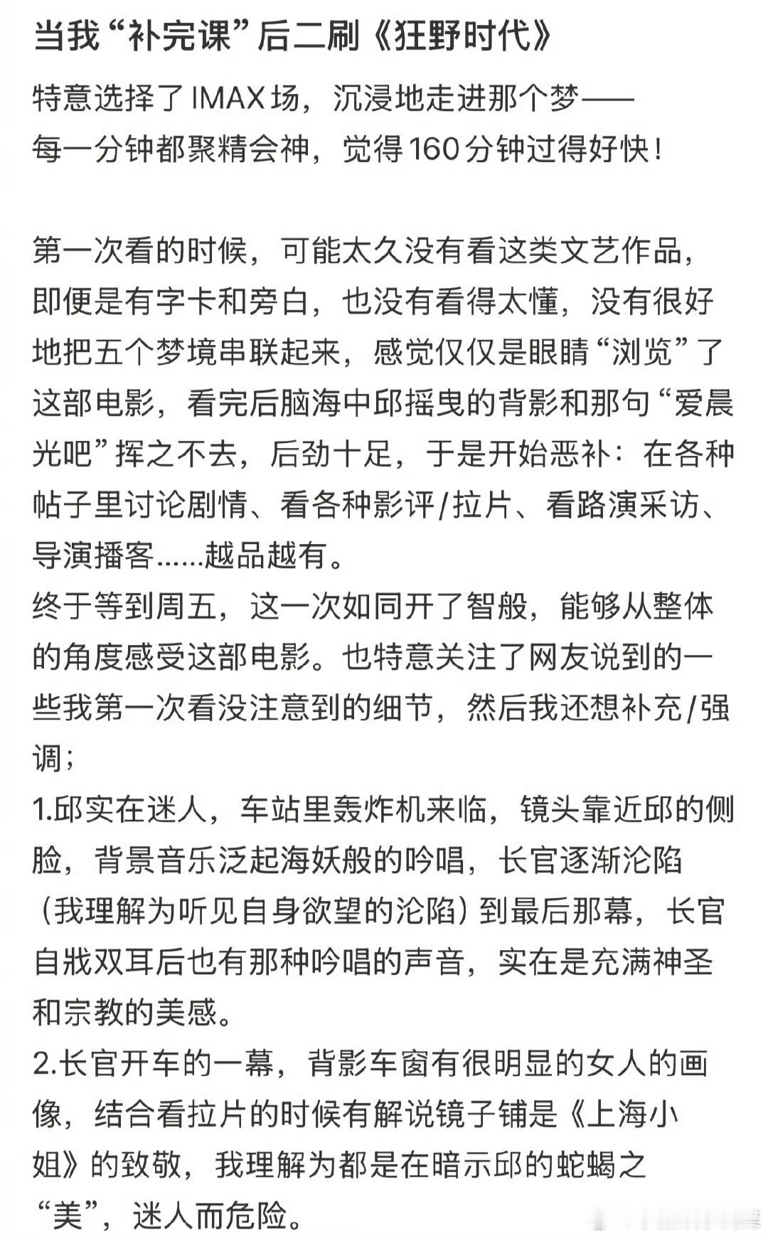 狂野时代观众二刷率 谁懂啊!一刷被镜头语言美到,二刷才解锁剧情里的隐藏细节,《狂野时代》的解读空间太广,每次看都有新感受~