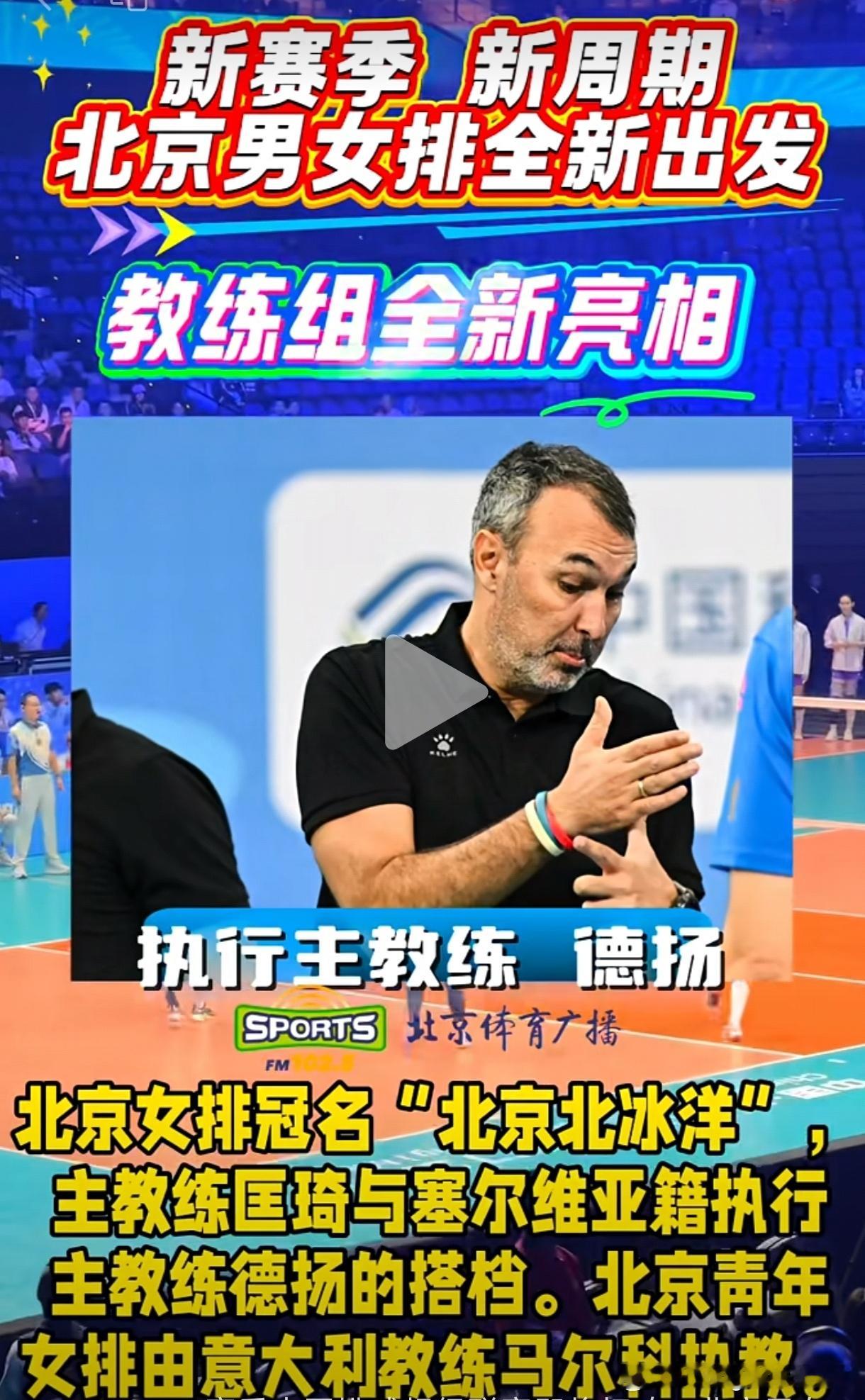 北京官媒发布,男女排教练调整,北京青年女排请的是意大利籍主教练,男排冠名不变,还是北汽,女排汽车变汽水儿。中国女排中国女排超级联赛北京北冰洋女排