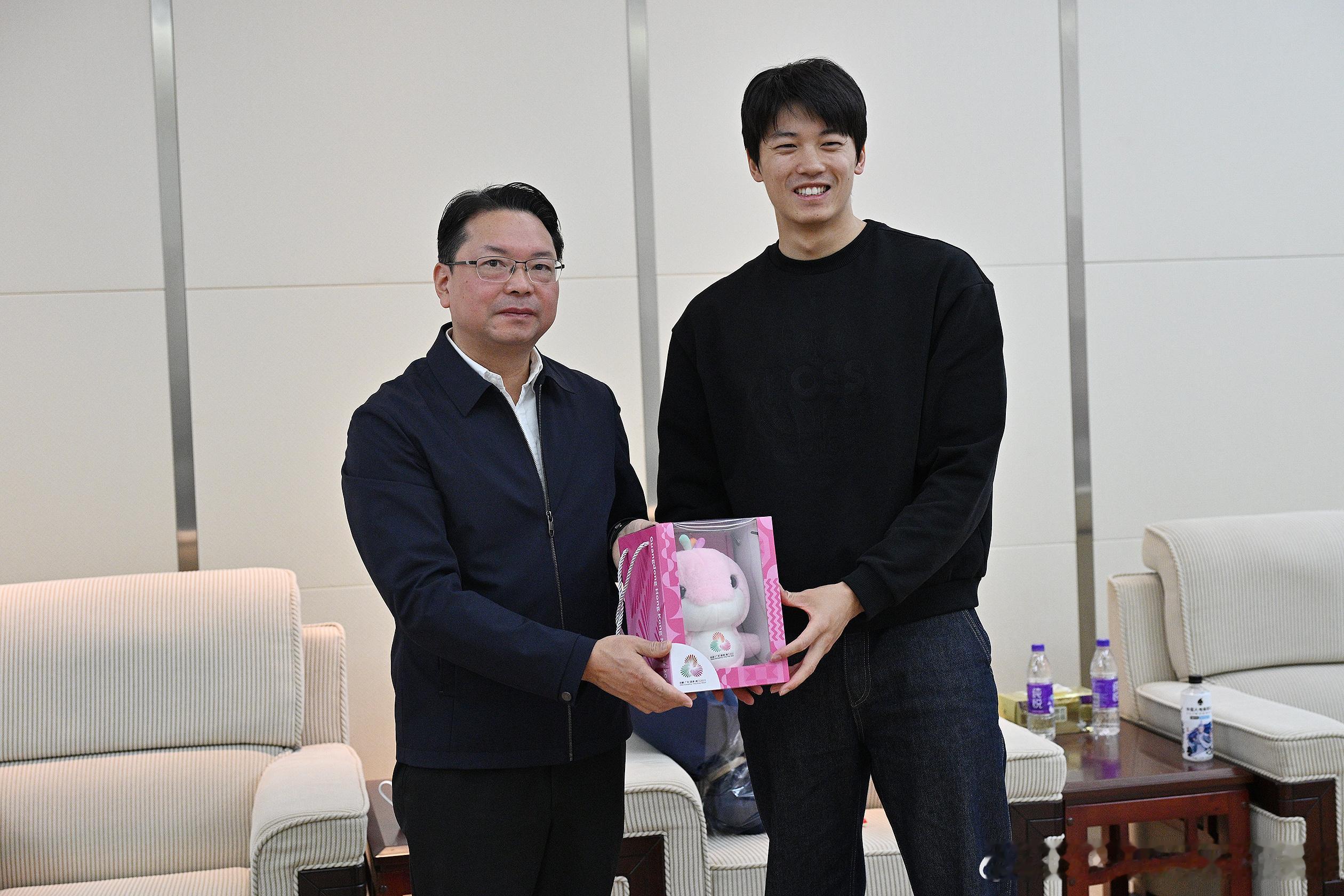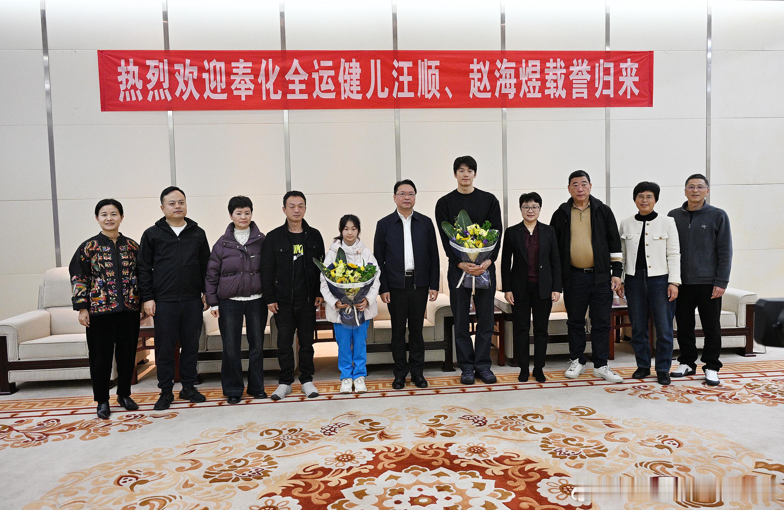 【魏建根会见载誉归来的全运会健儿汪顺赵海煜 勉励传承体育精神 在更广阔舞台展现奉化风采】图文|掌上奉化魏建根会见载誉归来的全运会健儿汪顺赵海煜勉励传承体育精神 在更广阔舞台展现奉化风采11月30日上午,区委副书记、区长魏建根在奉化体育中心体育馆会见载誉归来的全运会冠军汪顺、赵海煜及其父母,代表区委、区政府和全区人民向他们表示热烈祝贺和诚挚慰问。邵萍萍参加。魏建根指出,汪顺、赵海煜在全运会上取得的优异成绩,是他们个人长期刻苦训练、不懈努力的结果,也是我区体育事业蓬勃发展的生动体现。他们身上所展现的追求卓越、超越自我的体育精神,极大激发了全区人民的自豪感和奋进热情,为各行各业树立了榜样。衷心祝愿两位运动员在今后运动生涯中再接再厉、再创佳绩,继续为奉化、为中国体育事业增光添彩。同时,也期待他们积极发挥榜样作用,带动更多青少年投身体育锻炼、感受体育魅力,推动我区青少年体育和全民健身事业深入开展。魏建根表示,区委、区政府将始终把体育事业摆在重要位置,持续完善体育基础设施,健全体育人才培养体系,优化运动员保障机制,努力打造更加优质的体育发展环境,推动我区群众体育与竞技体育协同共进,为体育强国建设贡献奉化力量。“无论走多远,根永远在奉化;无论身在何方,心始终连着家乡。”汪顺、赵海煜动情地说,家乡的哺育和支持是他们一路前行的力量源泉。他们表示,未来将继续砥砺前行,努力以更辉煌的成绩回报家乡厚爱。同时,不遗余力宣传推介家乡,讲好奉化故事,为家乡文旅体事业融合发展贡献更大力量。汪顺的第五届全运会顺流而上全运会