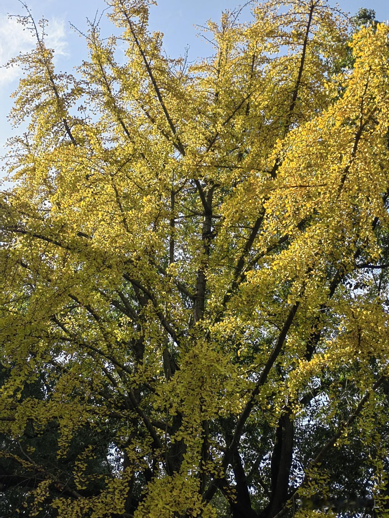 冬日暖阳下,金黄的银杏树叶随风舞动,美不胜收!