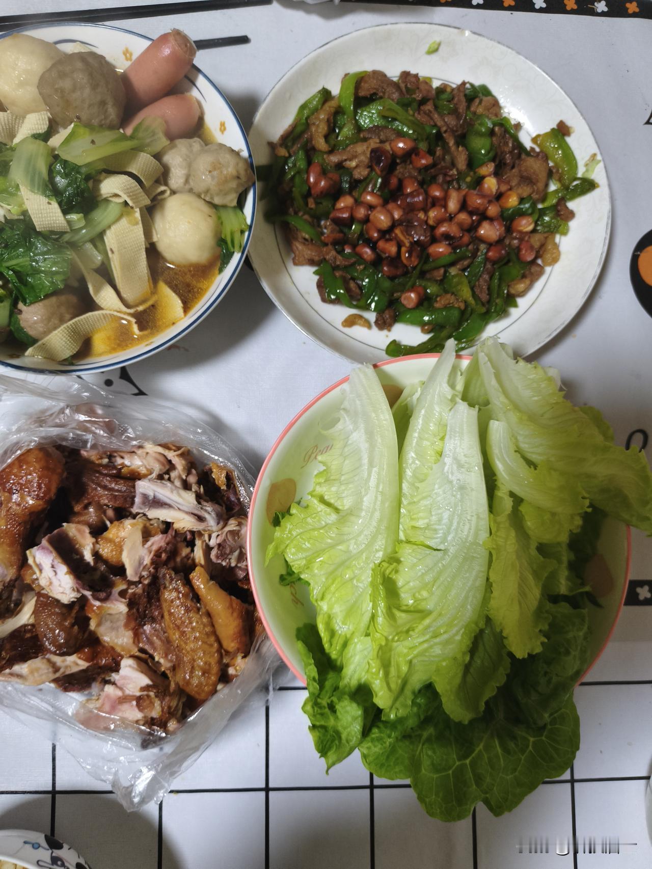 今天父亲去老家轮班照顾快94岁的奶奶,因此是今晚我家是四口人一起吃饭。 简简单单又是一餐,生菜一盘,青椒肉丝,火锅丸子烧青菜,我下班买了一只百味鸡,我觉得还行吧,今晚算三个荤菜,一个素菜了。 明天就开盘了,是新的一周的交易日,也是新的一个月的第一个交易日。12月交易日结束就代表着今年阳历年全部交易日的结束了[祈祷]