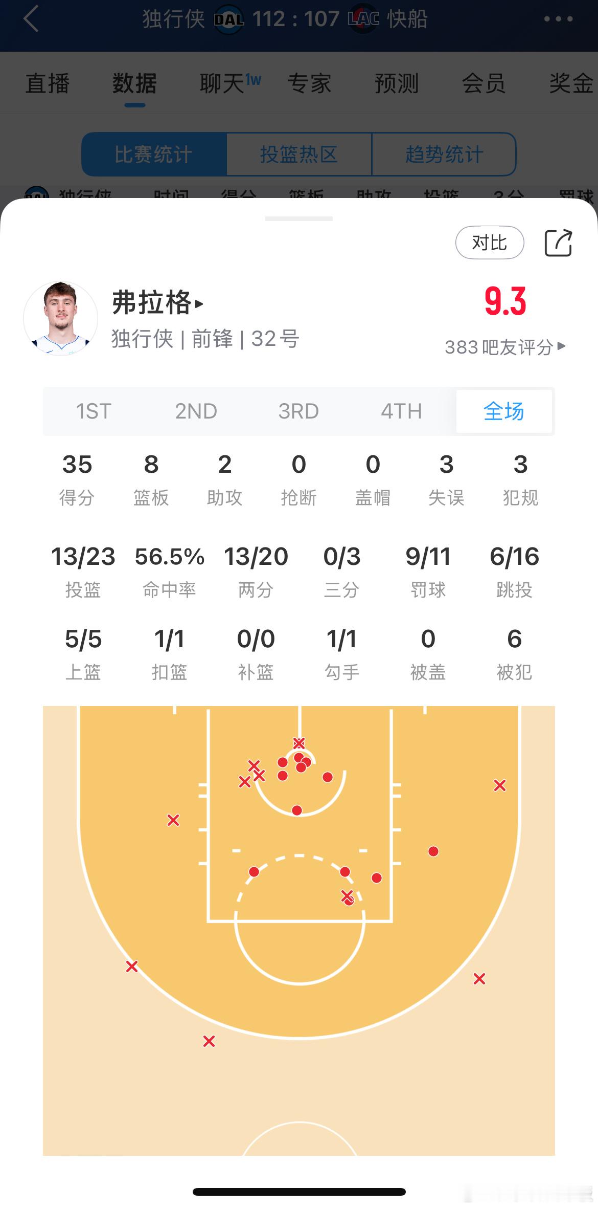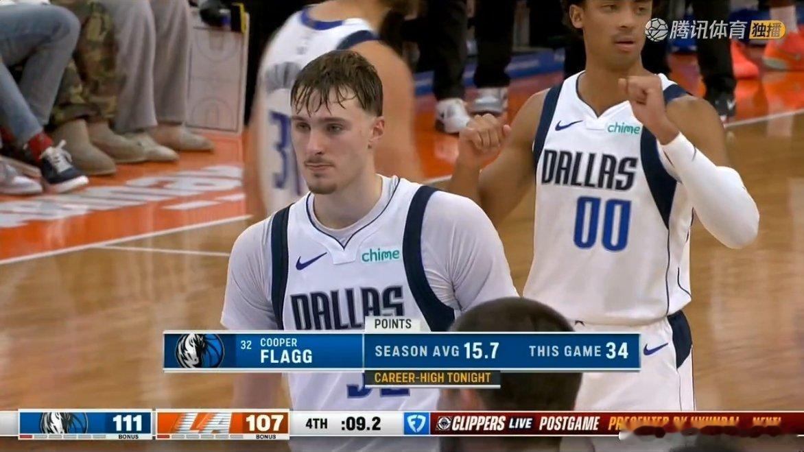 弗拉格砍下生涯新高35分,这是今年所有新秀的单场最高分独行侠vs快船